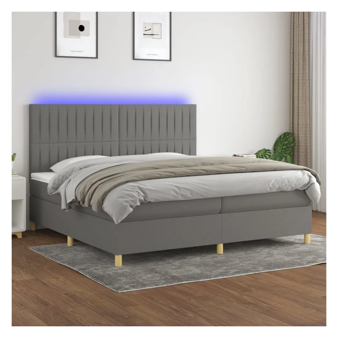 Utilisez ce sommier tapissier avec matelas et LED pour profiter d'un sommeil réparateur ! C'est le point central de votre chambre à coucher. Tissu durable : le tissu présente un aspect simple et épuré, et il est respirant et durable.Tête de lit pratique : la tête de lit est réglable en hauteur selon vos préférences. La tête de lit vous offre un excellent soutien du dos lorsque vous êtes assis dans votre lit pour lire ou regarder la télévision.Bande LED colorée : apportez de l'éclairage dans l'obscurité avec des lumières LED colorées !Matelas à ressorts ensachés : le ressort ensaché individuel intégré est connu pour sa très haute qualité tout en assurant un haut niveau de durabilité et d'adaptabilité. Il peut absorber efficacement le bruit et les chocs causés par les sauts et les rotations.Protège-matelas doux pour la peau : le protège-matelas est recouvert d'un tissu résistant et doux pour la peau, ce qui le rend souple et confortable. Remarque :Pour des raisons d'hygiène, le matelas ne peut pas être retourné si l'emballage est retiré ou ouvert.Seule la partie avec un symbole de ciseaux peut être coupée et seule la partie avec l'USB continuera à fonctionner comme avant.Chaque produit est livré avec un manuel de montage dans la boîte pour un montage facile.Ce produit est doté d'un connecteur USB, mais la source d'alimentation certifiée de USB 5V n'est pas incluse.