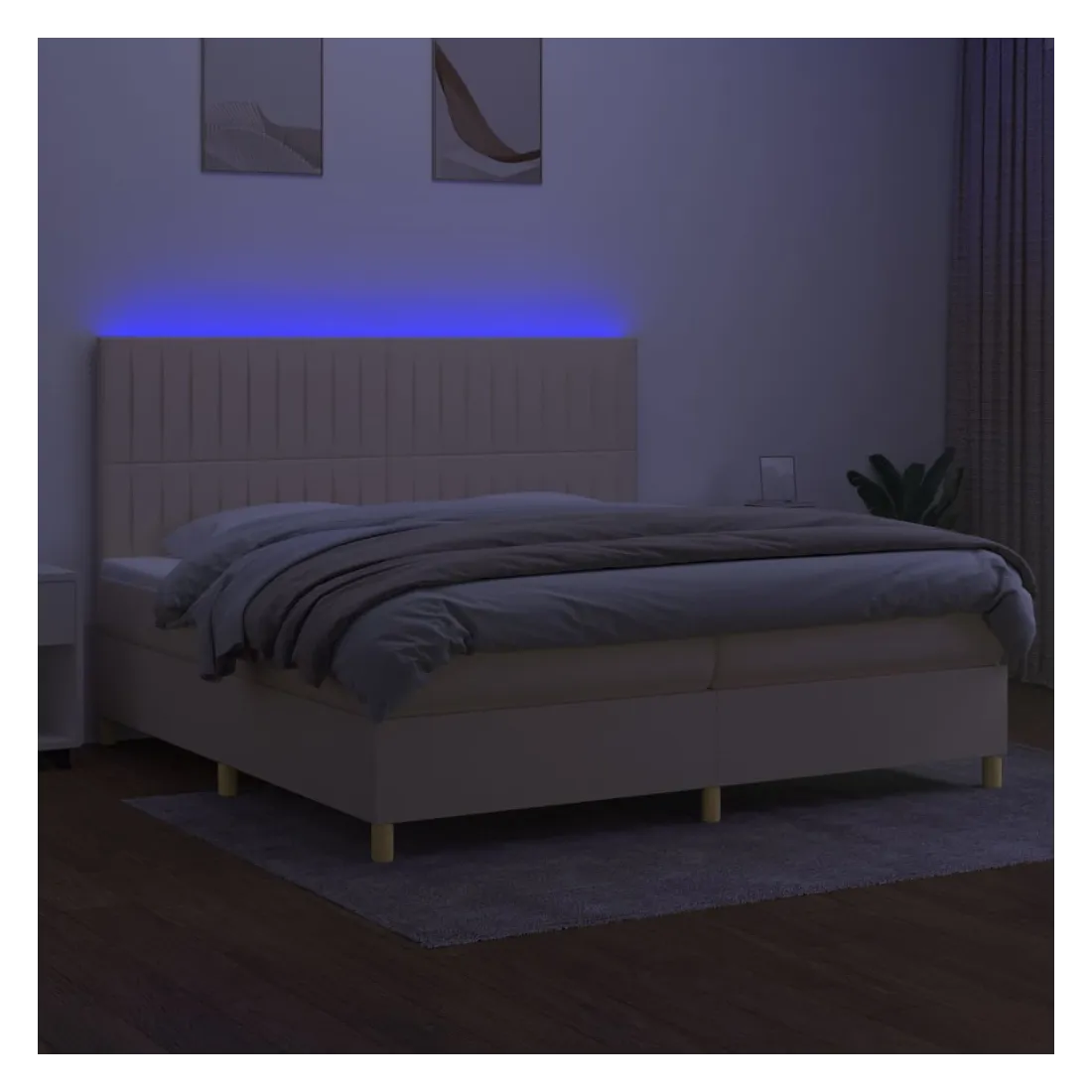 Utilisez ce sommier tapissier avec matelas et LED pour profiter d'un sommeil réparateur ! C'est le point central de votre chambre à coucher. Tissu durable : le tissu présente un aspect simple et épuré, et il est respirant et durable.Tête de lit pratique : la tête de lit est réglable en hauteur selon vos préférences. La tête de lit vous offre un excellent soutien du dos lorsque vous êtes assis dans votre lit pour lire ou regarder la télévision.Bande LED colorée : apportez de l'éclairage dans l'obscurité avec des lumières LED colorées !Matelas à ressorts ensachés : le ressort ensaché individuel intégré est connu pour sa très haute qualité tout en assurant un haut niveau de durabilité et d'adaptabilité. Il peut absorber efficacement le bruit et les chocs causés par les sauts et les rotations.Protège-matelas doux pour la peau : le protège-matelas est recouvert d'un tissu résistant et doux pour la peau, ce qui le rend souple et confortable. Remarque :Pour des raisons d'hygiène, le matelas ne peut pas être retourné si l'emballage est retiré ou ouvert.Seule la partie avec un symbole de ciseaux peut être coupée et seule la partie avec l'USB continuera à fonctionner comme avant.Chaque produit est livré avec un manuel de montage dans la boîte pour un montage facile.Ce produit est doté d'un connecteur USB, mais la source d'alimentation certifiée de USB 5V n'est pas incluse.
