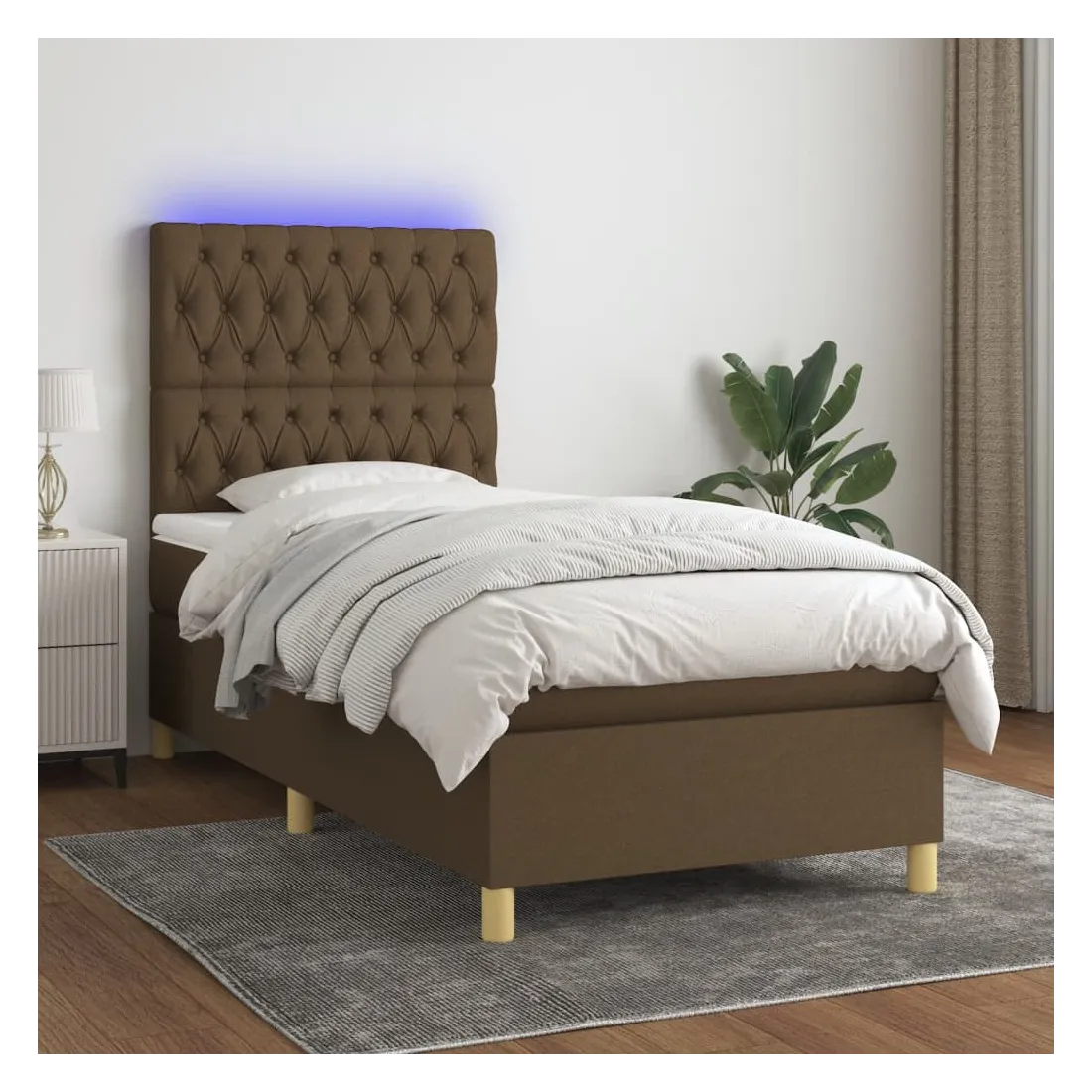 Sommier à lattes de lit matelas et LED Marron foncé 100x200 cm