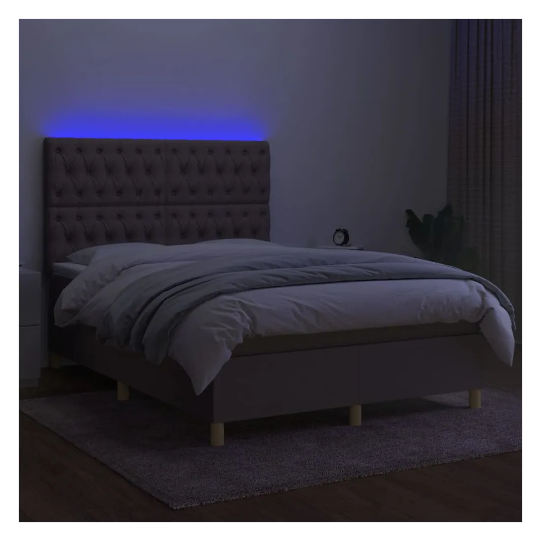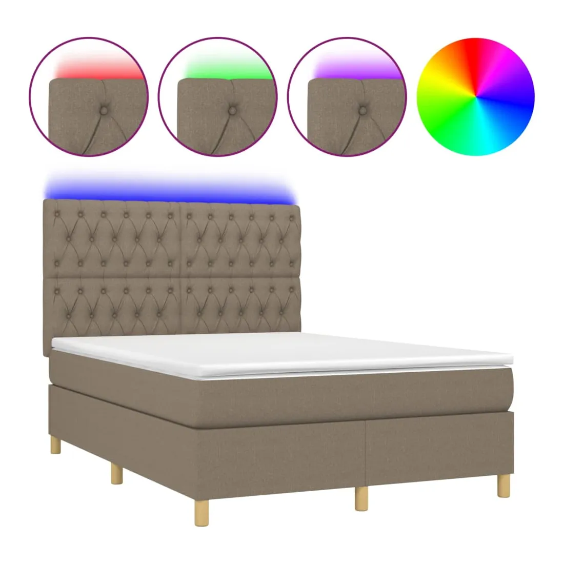 Sommier à lattes de lit et matelas et LED Taupe 140x190cm Tissu