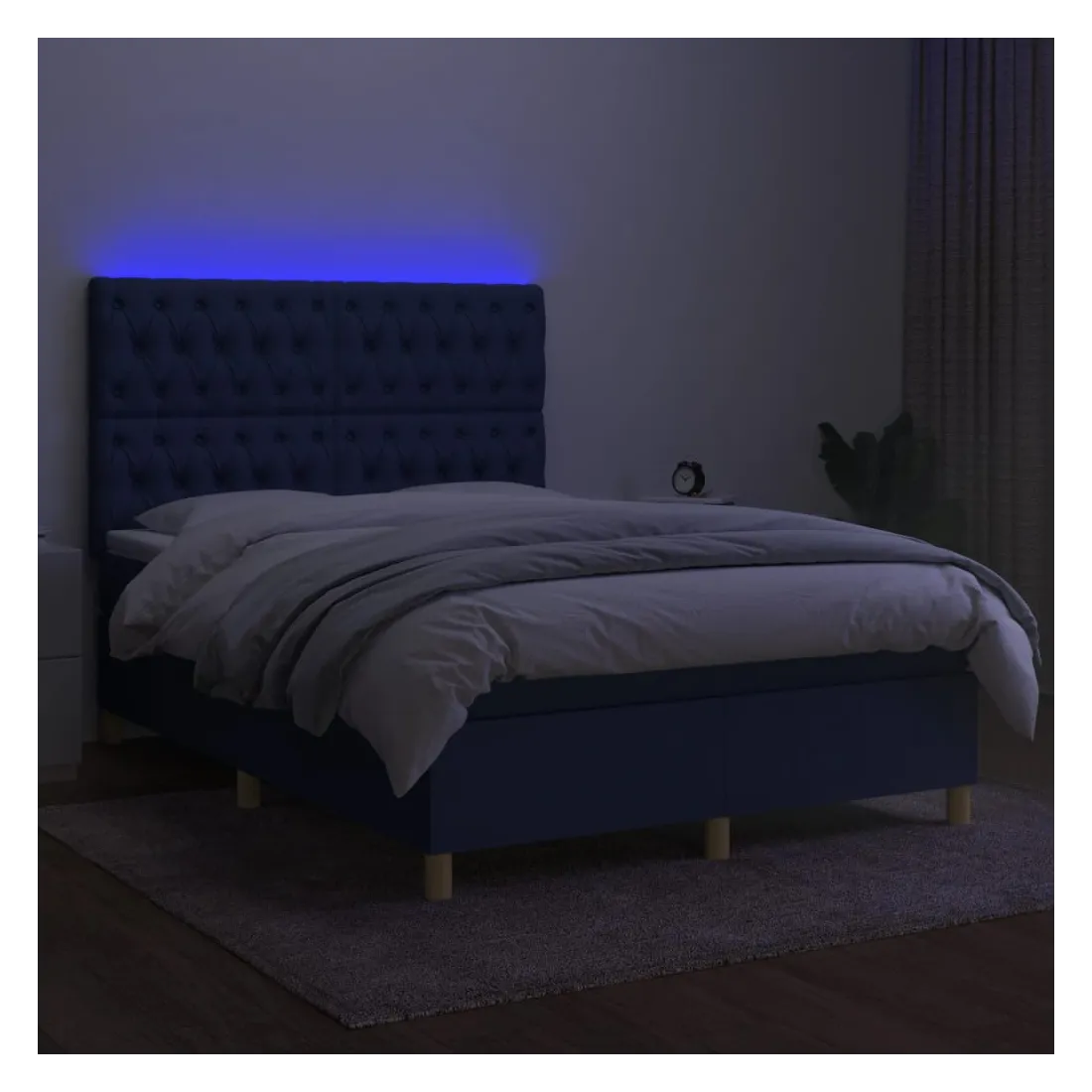Utilisez ce sommier tapissier avec matelas et LED pour profiter d'un sommeil réparateur ! C'est le point central de votre chambre à coucher. Tissu durable : le tissu présente un aspect simple et épuré, et il est respirant et durable.Tête de lit pratique : la tête de lit est réglable en hauteur selon vos préférences. La tête de lit vous offre un excellent soutien du dos lorsque vous êtes assis dans votre lit pour lire ou regarder la télévision.Bande LED colorée : apportez de l'éclairage dans l'obscurité avec des lumières LED colorées !Matelas à ressorts ensachés : le ressort ensaché individuel intégré est connu pour sa très haute qualité tout en assurant un haut niveau de durabilité et d'adaptabilité. Il peut absorber efficacement le bruit et les chocs causés par les sauts et les rotations.Protège-matelas doux pour la peau : le protège-matelas est recouvert d'un tissu résistant et doux pour la peau, ce qui le rend souple et confortable. Remarque :Pour des raisons d'hygiène, le matelas ne peut pas être retourné si l'emballage est retiré ou ouvert.Seule la partie avec un symbole de ciseaux peut être coupée et seule la partie avec l'USB continuera à fonctionner comme avant.Chaque produit est livré avec un manuel de montage dans la boîte pour un montage facile.Ce produit est doté d'un connecteur USB, mais la source d'alimentation certifiée de USB 5V n'est pas incluse.