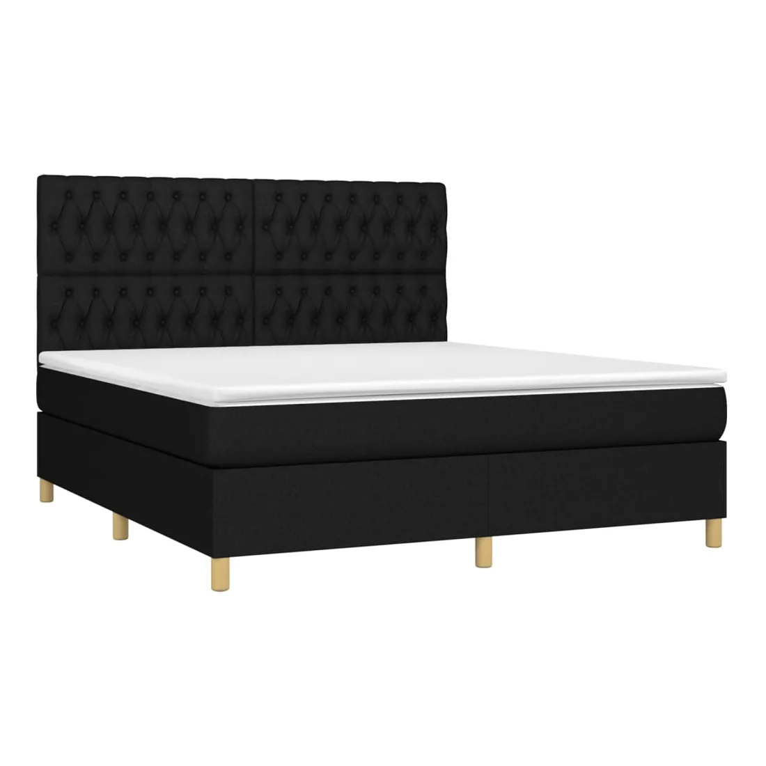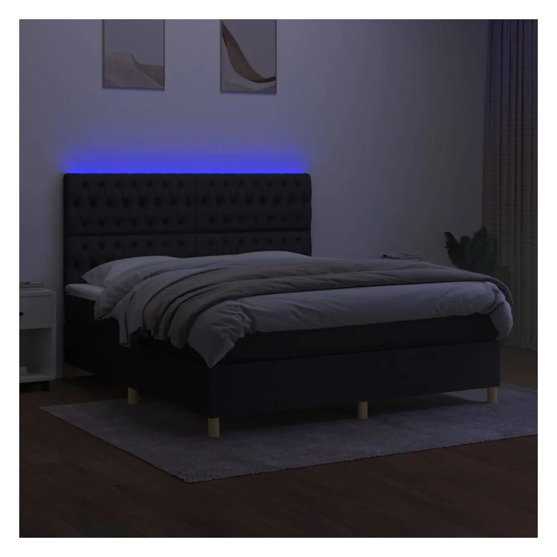Sommier à lattes de lit et matelas et LED Noir 180x200 cm Tissu