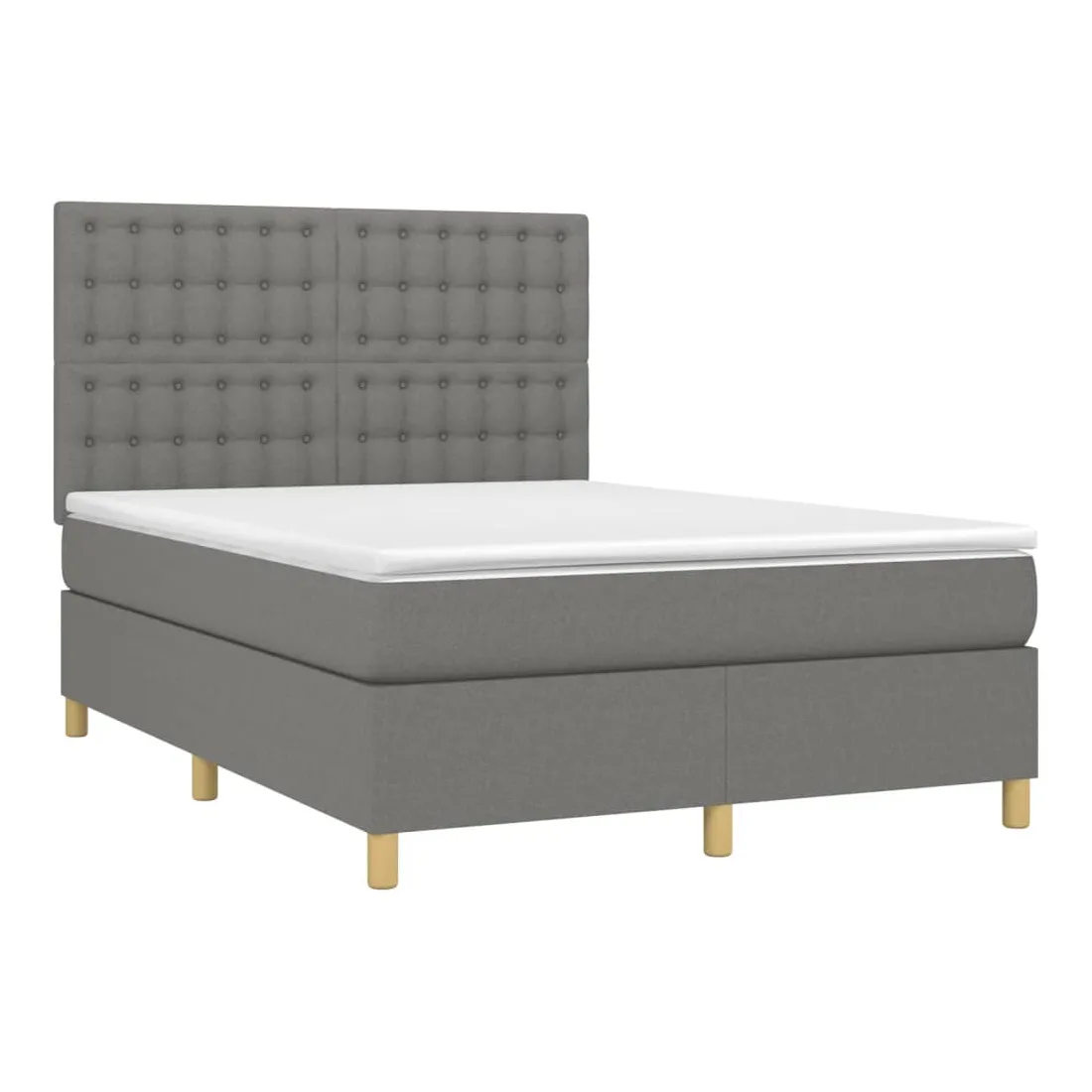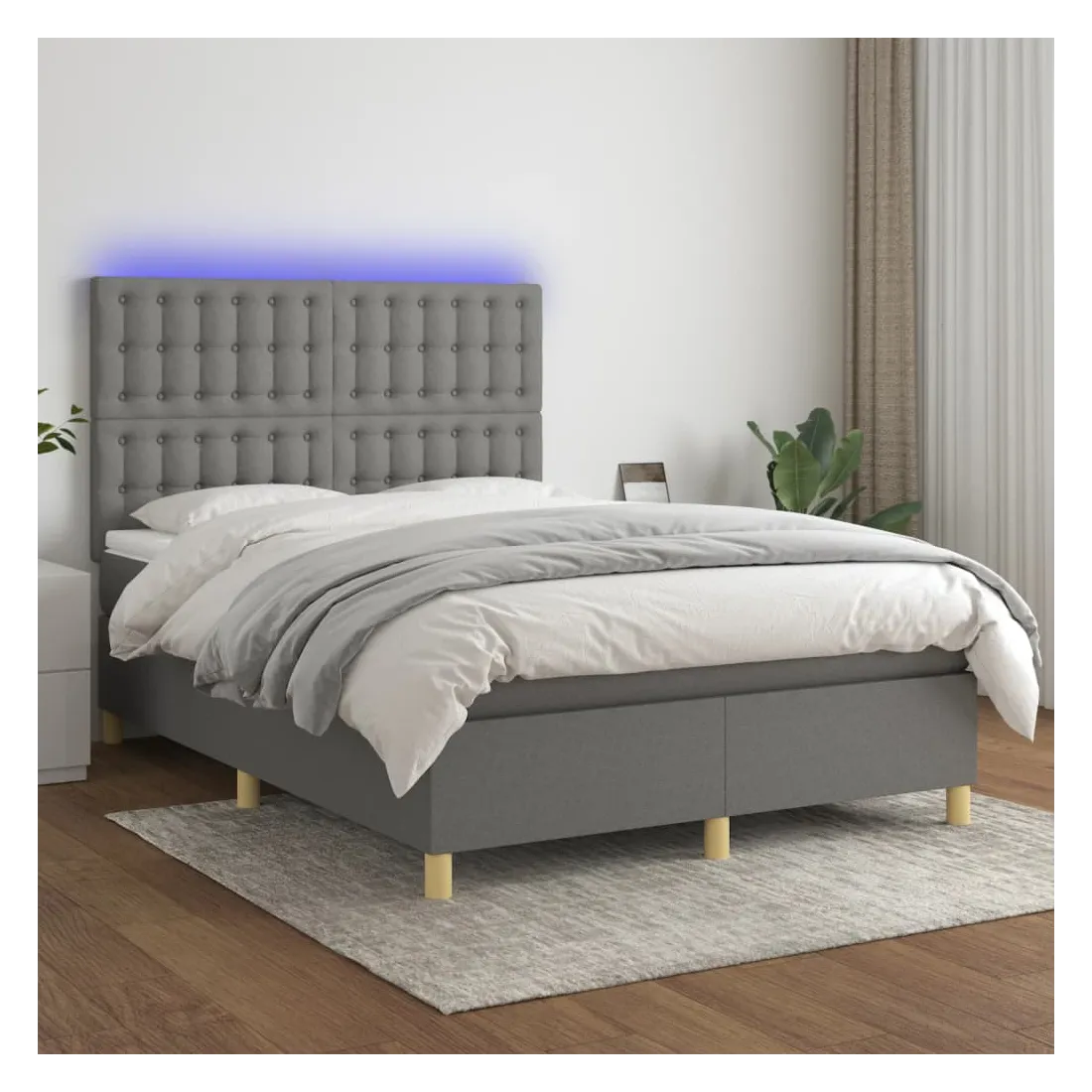 Sommier à lattes de lit et matelas et LED Gris foncé 140x190 cm
