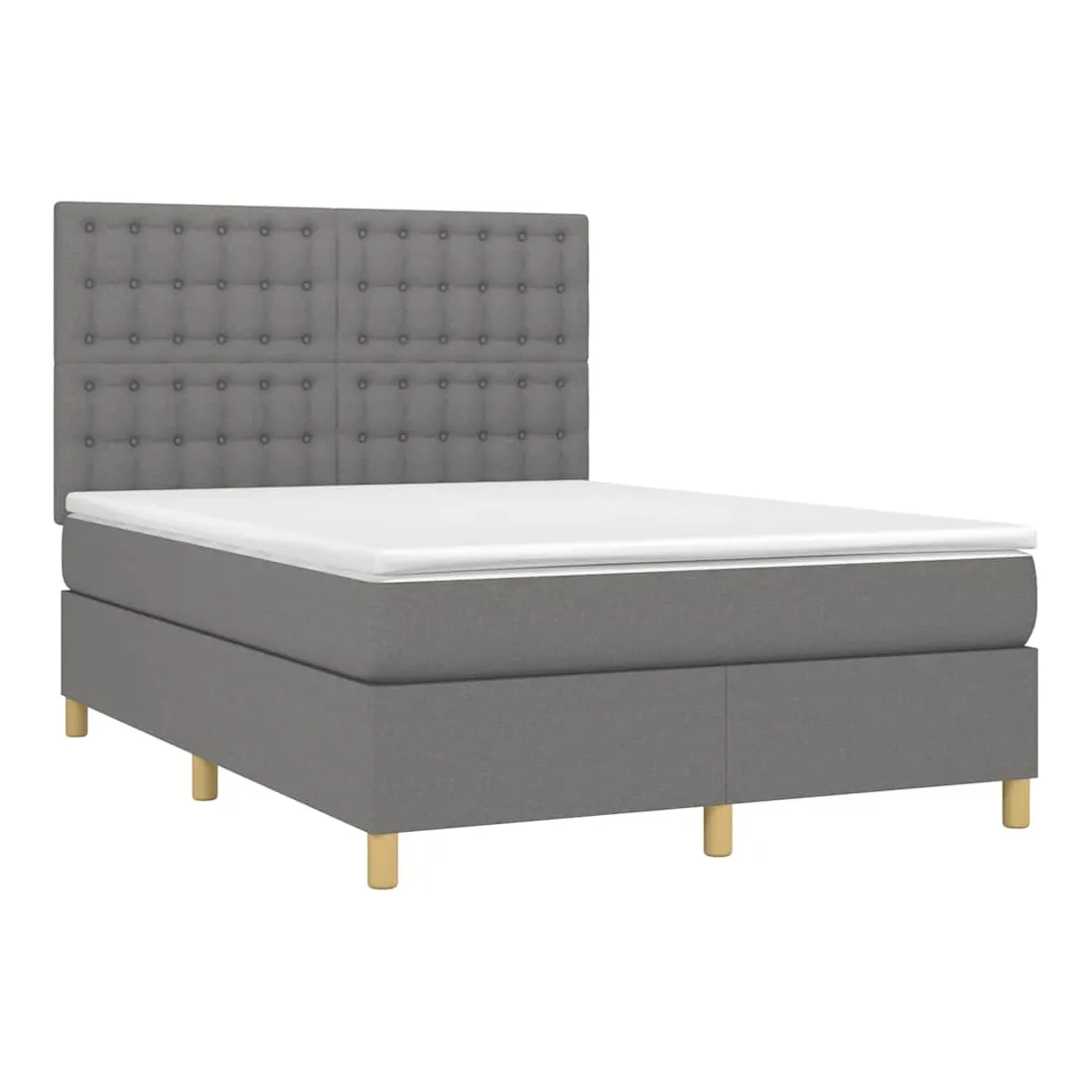 Sommier à lattes de lit et matelas et LED Gris foncé 140x200 cm