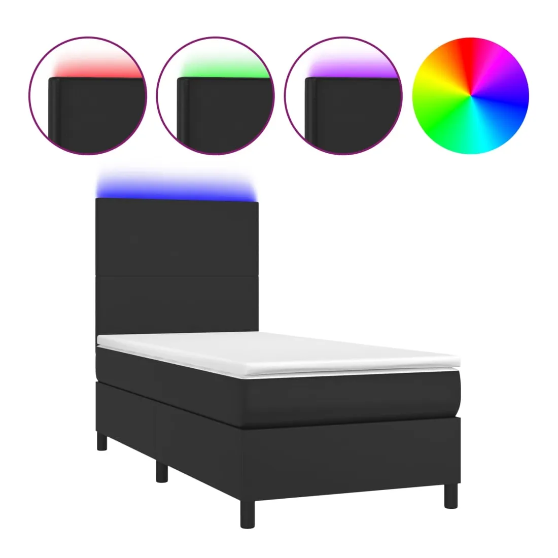 Utilisez ce sommier tapissier avec matelas et LED pour profiter d'un sommeil réparateur ! C'est le point central de votre chambre à coucher. Similicuir durable : le similicuir de qualité supérieure est un matériau très durable. Il est résistant aux taches, ce qui le rend facile à nettoyer avec un chiffon humide. La surface lisse donne également un aspect luxueux et la beauté du cuir véritable.Tête de lit pratique : la tête de lit est réglable en hauteur selon vos préférences. La tête de lit vous offre un excellent soutien du dos lorsque vous êtes assis dans votre lit pour lire ou regarder la télévision.Bande LED colorée : apportez de l'éclairage dans l'obscurité avec des lumières LED colorées !Matelas à ressorts ensachés : le ressort ensaché individuel intégré est connu pour sa très haute qualité tout en assurant un haut niveau de durabilité et d'adaptabilité. Il peut absorber efficacement le bruit et les chocs causés par les sauts et les rotations.Protège-matelas doux pour la peau : le protège-matelas est recouvert d'un tissu résistant et doux pour la peau, ce qui le rend souple et confortable. Remarque :Pour des raisons d'hygiène, le matelas ne peut pas être retourné si l'emballage est retiré ou ouvert.Seule la partie avec un symbole de ciseaux peut être coupée et seule la partie avec l'USB continuera à fonctionner comme avant.Chaque produit est livré avec un manuel de montage dans la boîte pour un montage facile.Ce produit est doté d'un connecteur USB, mais la source d'alimentation certifiée de USB 5V n'est pas incluse.