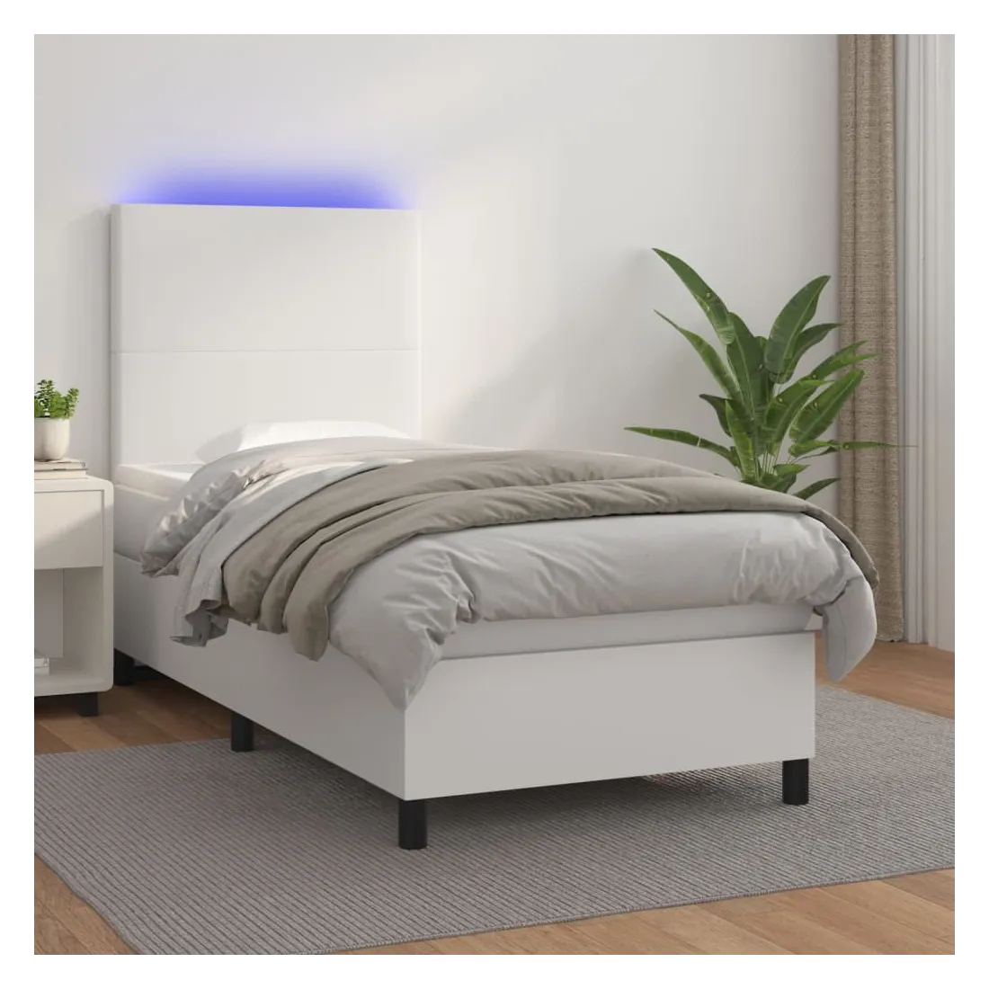 Utilisez ce sommier tapissier avec matelas et LED pour profiter d'un sommeil réparateur ! C'est le point central de votre chambre à coucher. Similicuir durable : le similicuir de qualité supérieure est un matériau très durable. Il est résistant aux taches, ce qui le rend facile à nettoyer avec un chiffon humide. La surface lisse donne également un aspect luxueux et la beauté du cuir véritable.Tête de lit pratique : la tête de lit est réglable en hauteur selon vos préférences. La tête de lit vous offre un excellent soutien du dos lorsque vous êtes assis dans votre lit pour lire ou regarder la télévision.Bande LED colorée : apportez de l'éclairage dans l'obscurité avec des lumières LED colorées !Matelas à ressorts ensachés : le ressort ensaché individuel intégré est connu pour sa très haute qualité tout en assurant un haut niveau de durabilité et d'adaptabilité. Il peut absorber efficacement le bruit et les chocs causés par les sauts et les rotations.Protège-matelas doux pour la peau : le protège-matelas est recouvert d'un tissu résistant et doux pour la peau, ce qui le rend souple et confortable. Remarque :Pour des raisons d'hygiène, le matelas ne peut pas être retourné si l'emballage est retiré ou ouvert.Seule la partie avec un symbole de ciseaux peut être coupée et seule la partie avec l'USB continuera à fonctionner comme avant.Chaque produit est livré avec un manuel de montage dans la boîte pour un montage facile.Ce produit est doté d'un connecteur USB, mais la source d'alimentation certifiée de USB 5V n'est pas incluse.