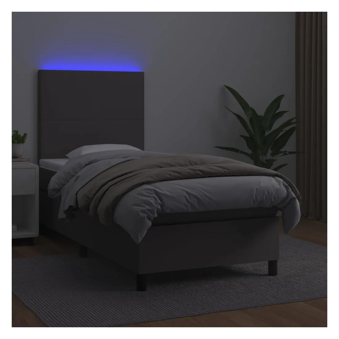 Utilisez ce sommier tapissier avec matelas et LED pour profiter d'un sommeil réparateur ! C'est le point central de votre chambre à coucher. Similicuir durable : le similicuir de qualité supérieure est un matériau très durable. Il est résistant aux taches, ce qui le rend facile à nettoyer avec un chiffon humide. La surface lisse donne également un aspect luxueux et la beauté du cuir véritable.Tête de lit pratique : la tête de lit est réglable en hauteur selon vos préférences. La tête de lit vous offre un excellent soutien du dos lorsque vous êtes assis dans votre lit pour lire ou regarder la télévision.Bande LED colorée : apportez de l'éclairage dans l'obscurité avec des lumières LED colorées !Matelas à ressorts ensachés : le ressort ensaché individuel intégré est connu pour sa très haute qualité tout en assurant un haut niveau de durabilité et d'adaptabilité. Il peut absorber efficacement le bruit et les chocs causés par les sauts et les rotations.Protège-matelas doux pour la peau : le protège-matelas est recouvert d'un tissu résistant et doux pour la peau, ce qui le rend souple et confortable. Remarque :Pour des raisons d'hygiène, le matelas ne peut pas être retourné si l'emballage est retiré ou ouvert.Seule la partie avec un symbole de ciseaux peut être coupée et seule la partie avec l'USB continuera à fonctionner comme avant.Chaque produit est livré avec un manuel de montage dans la boîte pour un montage facile.Ce produit est doté d'un connecteur USB, mais la source d'alimentation certifiée de USB 5V n'est pas incluse.