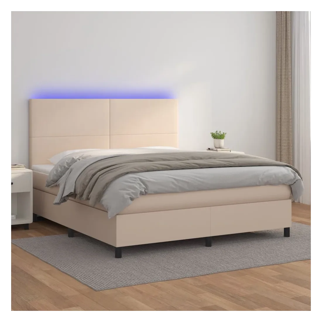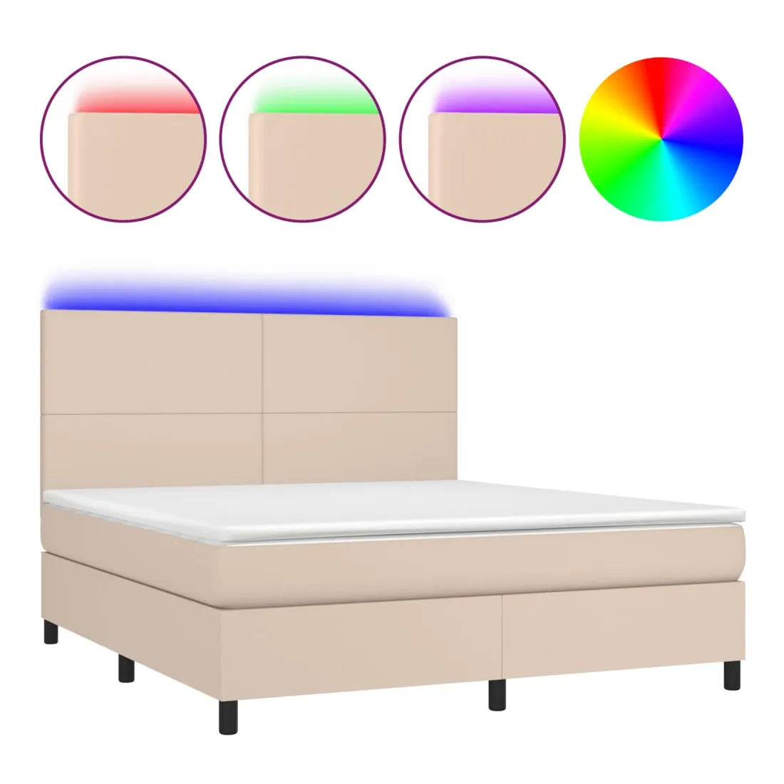 Utilisez ce sommier tapissier avec matelas et LED pour profiter d'un sommeil réparateur ! C'est le point central de votre chambre à coucher. Similicuir durable : le similicuir de qualité supérieure est un matériau très durable. Il est résistant aux taches, ce qui le rend facile à nettoyer avec un chiffon humide. La surface lisse donne également un aspect luxueux et la beauté du cuir véritable.Tête de lit pratique : la tête de lit est réglable en hauteur selon vos préférences. La tête de lit vous offre un excellent soutien du dos lorsque vous êtes assis dans votre lit pour lire ou regarder la télévision.Bande LED colorée : apportez de l'éclairage dans l'obscurité avec des lumières LED colorées !Matelas à ressorts ensachés : le ressort ensaché individuel intégré est connu pour sa très haute qualité tout en assurant un haut niveau de durabilité et d'adaptabilité. Il peut absorber efficacement le bruit et les chocs causés par les sauts et les rotations.Protège-matelas doux pour la peau : le protège-matelas est recouvert d'un tissu résistant et doux pour la peau, ce qui le rend souple et confortable. Remarque :Pour des raisons d'hygiène, le matelas ne peut pas être retourné si l'emballage est retiré ou ouvert.Seule la partie avec un symbole de ciseaux peut être coupée et seule la partie avec l'USB continuera à fonctionner comme avant.Chaque produit est livré avec un manuel de montage dans la boîte pour un montage facile.Ce produit est doté d'un connecteur USB, mais la source d'alimentation certifiée de USB 5V n'est pas incluse.