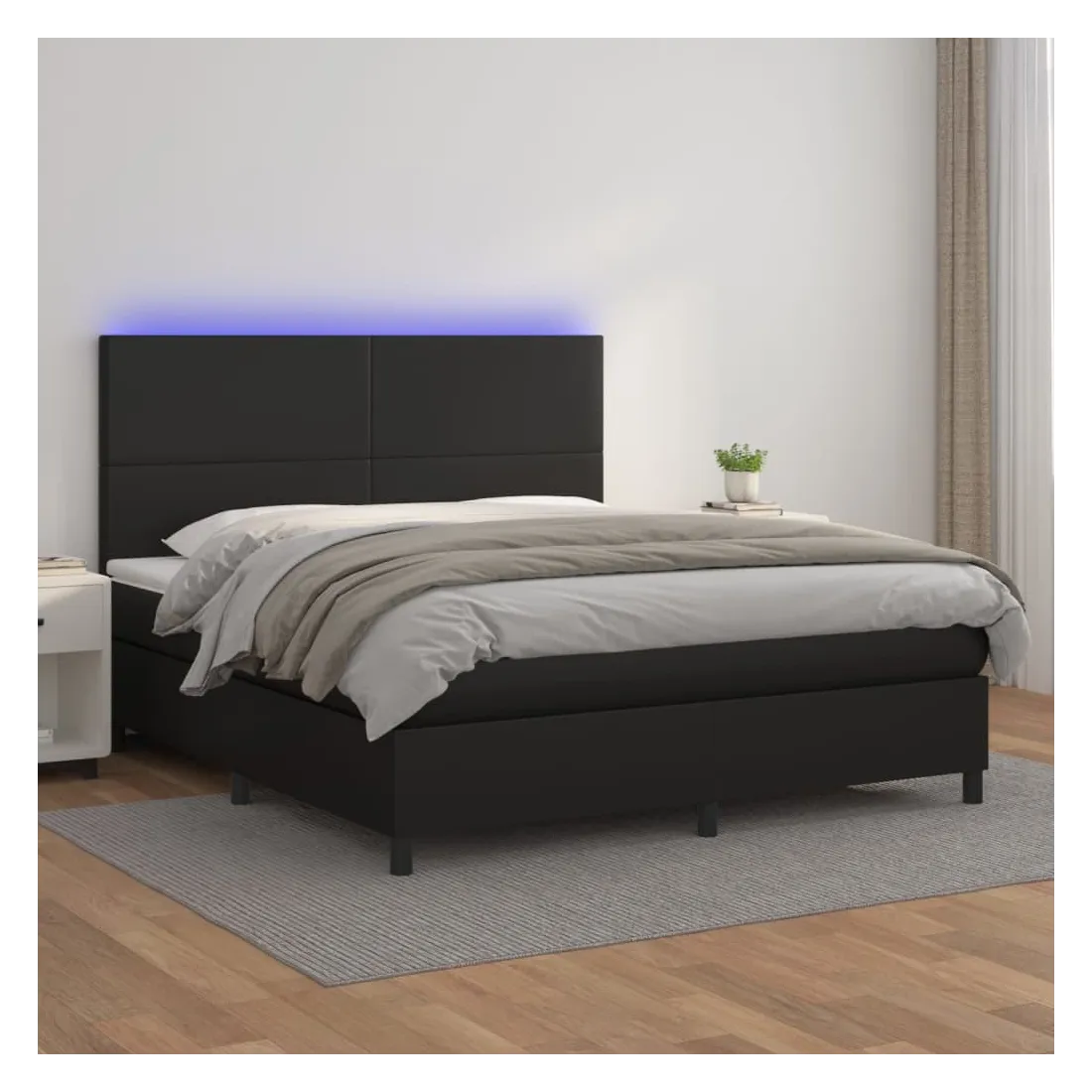 Utilisez ce sommier tapissier avec matelas et LED pour profiter d'un sommeil réparateur ! C'est le point central de votre chambre à coucher. Similicuir durable : le similicuir de qualité supérieure est un matériau très durable. Il est résistant aux taches, ce qui le rend facile à nettoyer avec un chiffon humide. La surface lisse donne également un aspect luxueux et la beauté du cuir véritable.Tête de lit pratique : la tête de lit est réglable en hauteur selon vos préférences. La tête de lit vous offre un excellent soutien du dos lorsque vous êtes assis dans votre lit pour lire ou regarder la télévision.Bande LED colorée : apportez de l'éclairage dans l'obscurité avec des lumières LED colorées !Matelas à ressorts ensachés : le ressort ensaché individuel intégré est connu pour sa très haute qualité tout en assurant un haut niveau de durabilité et d'adaptabilité. Il peut absorber efficacement le bruit et les chocs causés par les sauts et les rotations.Protège-matelas doux pour la peau : le protège-matelas est recouvert d'un tissu résistant et doux pour la peau, ce qui le rend souple et confortable. Remarque :Pour des raisons d'hygiène, le matelas ne peut pas être retourné si l'emballage est retiré ou ouvert.Seule la partie avec un symbole de ciseaux peut être coupée et seule la partie avec l'USB continuera à fonctionner comme avant.Chaque produit est livré avec un manuel de montage dans la boîte pour un montage facile.Ce produit est doté d'un connecteur USB, mais la source d'alimentation certifiée de USB 5V n'est pas incluse.
