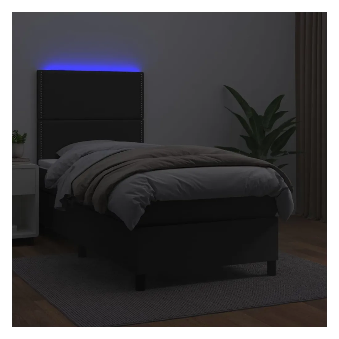 Utilisez ce sommier tapissier avec matelas et LED pour profiter d'un sommeil réparateur ! C'est le point central de votre chambre à coucher. Similicuir durable : le similicuir de qualité supérieure est un matériau très durable. Il est résistant aux taches, ce qui le rend facile à nettoyer avec un chiffon humide. La surface lisse donne également un aspect luxueux et la beauté du cuir véritable.Tête de lit pratique : la tête de lit est réglable en hauteur selon vos préférences. La tête de lit vous offre un excellent soutien du dos lorsque vous êtes assis dans votre lit pour lire ou regarder la télévision.Bande LED colorée : apportez de l'éclairage dans l'obscurité avec des lumières LED colorées !Matelas à ressorts ensachés : le ressort ensaché individuel intégré est connu pour sa très haute qualité tout en assurant un haut niveau de durabilité et d'adaptabilité. Il peut absorber efficacement le bruit et les chocs causés par les sauts et les rotations.Protège-matelas doux pour la peau : le protège-matelas est recouvert d'un tissu résistant et doux pour la peau, ce qui le rend souple et confortable. Remarque :Pour des raisons d'hygiène, le matelas ne peut pas être retourné si l'emballage est retiré ou ouvert.Seule la partie avec un symbole de ciseaux peut être coupée et seule la partie avec l'USB continuera à fonctionner comme avant.Chaque produit est livré avec un manuel de montage dans la boîte pour un montage facile.Ce produit est doté d'un connecteur USB, mais la source d'alimentation certifiée de USB 5V n'est pas incluse.