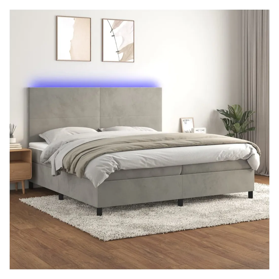 Utilisez ce sommier tapissier avec matelas et LED pour profiter d'un sommeil réparateur ! C'est le point central de votre chambre à coucher. Velours doux : le velours est un tissu doux et luxueux qui se reconnaît à son tas dense de fibres uniformément coupées qui ont une touche lisse. Le tissu en velours présente un toucher doux distinctif, ce qui le rend confortable au toucher.Tête de lit pratique : la tête de lit est réglable en hauteur selon vos préférences. La tête de lit vous offre un excellent soutien du dos lorsque vous êtes assis dans votre lit pour lire ou regarder la télévision.Bande LED colorée : apportez de l'éclairage dans l'obscurité avec des lumières LED colorées !Matelas à ressorts ensachés : le ressort ensaché individuel intégré est connu pour sa très haute qualité tout en assurant un haut niveau de durabilité et d'adaptabilité. Il peut absorber efficacement le bruit et les chocs causés par les sauts et les rotations.Protège-matelas doux pour la peau : le protège-matelas est recouvert d'un tissu résistant et doux pour la peau, ce qui le rend souple et confortable. Remarque :Pour des raisons d'hygiène, le matelas ne peut pas être retourné si l'emballage est retiré ou ouvert.Seule la partie avec un symbole de ciseaux peut être coupée et seule la partie avec l'USB continuera à fonctionner comme avant.Chaque produit est livré avec un manuel de montage dans la boîte pour un montage facile.Ce produit est doté d'un connecteur USB, mais la source d'alimentation certifiée de USB 5V n'est pas incluse.