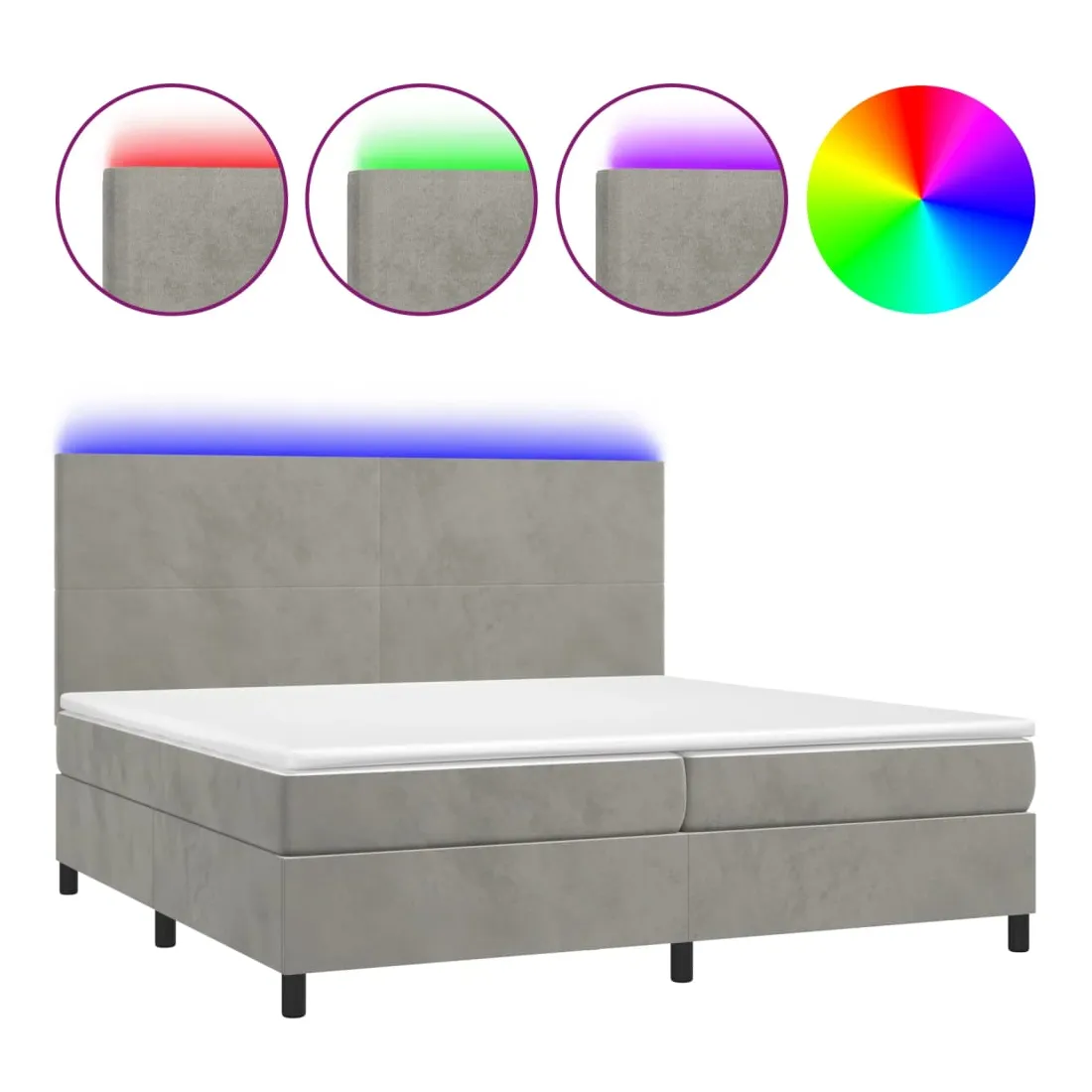 Sommier à lattes de lit avec matelas LED Gris clair 200x200 cm