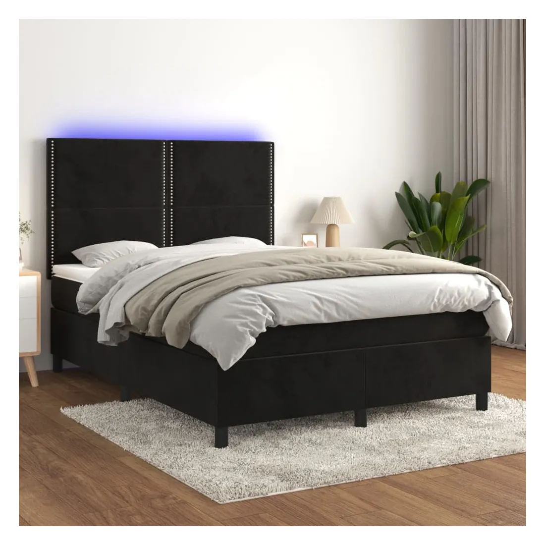 Sommier à lattes de lit matelas et LED Noir 140x190 cm Velours
