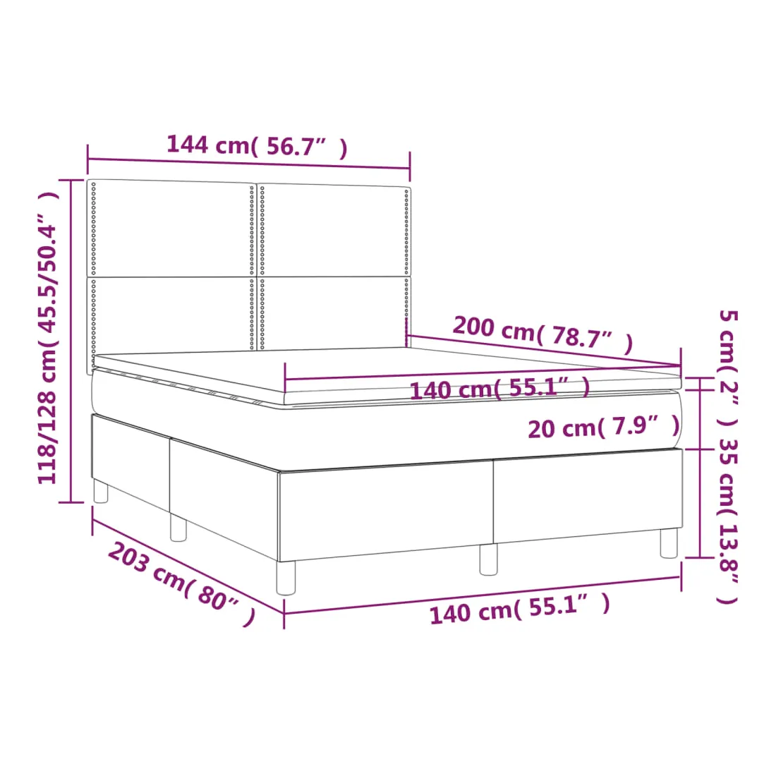• Dimensions : 140 x 200 x 20 cm (l x L x H)