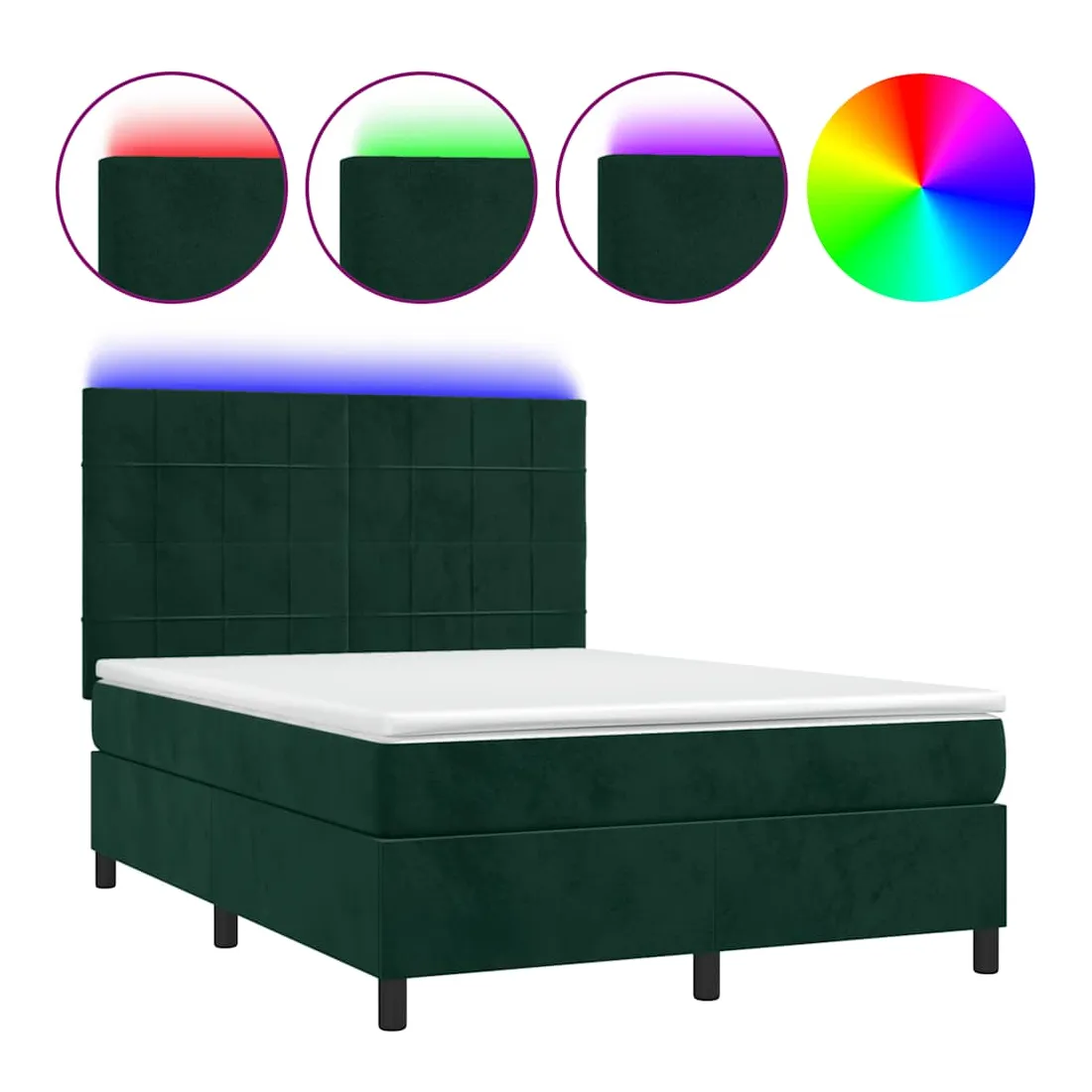 Sommier à lattes de lit matelas et LED Vert foncé 140x190 cm