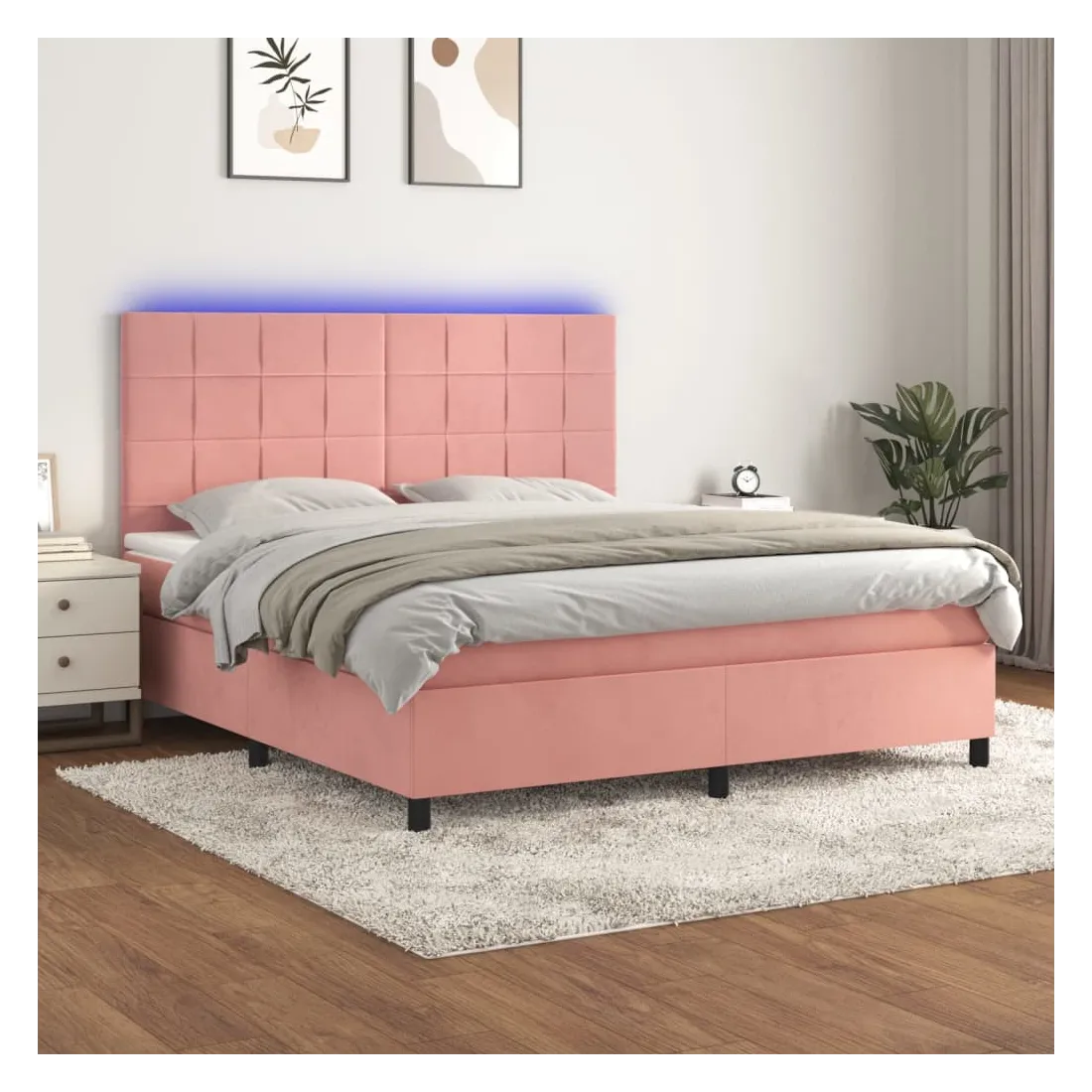 Sommier à lattes de lit matelas et LED Rose 160x200 cm Velours