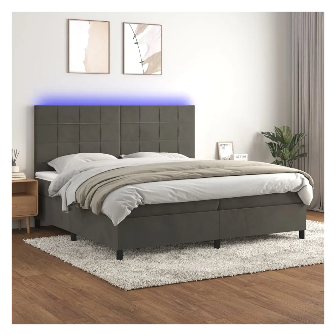 Utilisez ce sommier tapissier avec matelas et LED pour profiter d'un sommeil réparateur ! C'est le point central de votre chambre à coucher. Velours doux : le velours est un tissu doux et luxueux qui se reconnaît à son tas dense de fibres uniformément coupées qui ont une touche lisse. Le tissu en velours présente un toucher doux distinctif, ce qui le rend confortable au toucher.Tête de lit pratique : la tête de lit est réglable en hauteur selon vos préférences. La tête de lit vous offre un excellent soutien du dos lorsque vous êtes assis dans votre lit pour lire ou regarder la télévision.Bande LED colorée : apportez de l'éclairage dans l'obscurité avec des lumières LED colorées !Matelas à ressorts ensachés : le ressort ensaché individuel intégré est connu pour sa très haute qualité tout en assurant un haut niveau de durabilité et d'adaptabilité. Il peut absorber efficacement le bruit et les chocs causés par les sauts et les rotations.Protège-matelas doux pour la peau : le protège-matelas est recouvert d'un tissu résistant et doux pour la peau, ce qui le rend souple et confortable. Remarque :Pour des raisons d'hygiène, le matelas ne peut pas être retourné si l'emballage est retiré ou ouvert.Seule la partie avec un symbole de ciseaux peut être coupée et seule la partie avec l'USB continuera à fonctionner comme avant.Chaque produit est livré avec un manuel de montage dans la boîte pour un montage facile.Ce produit est doté d'un connecteur USB, mais la source d'alimentation certifiée de USB 5V n'est pas incluse.