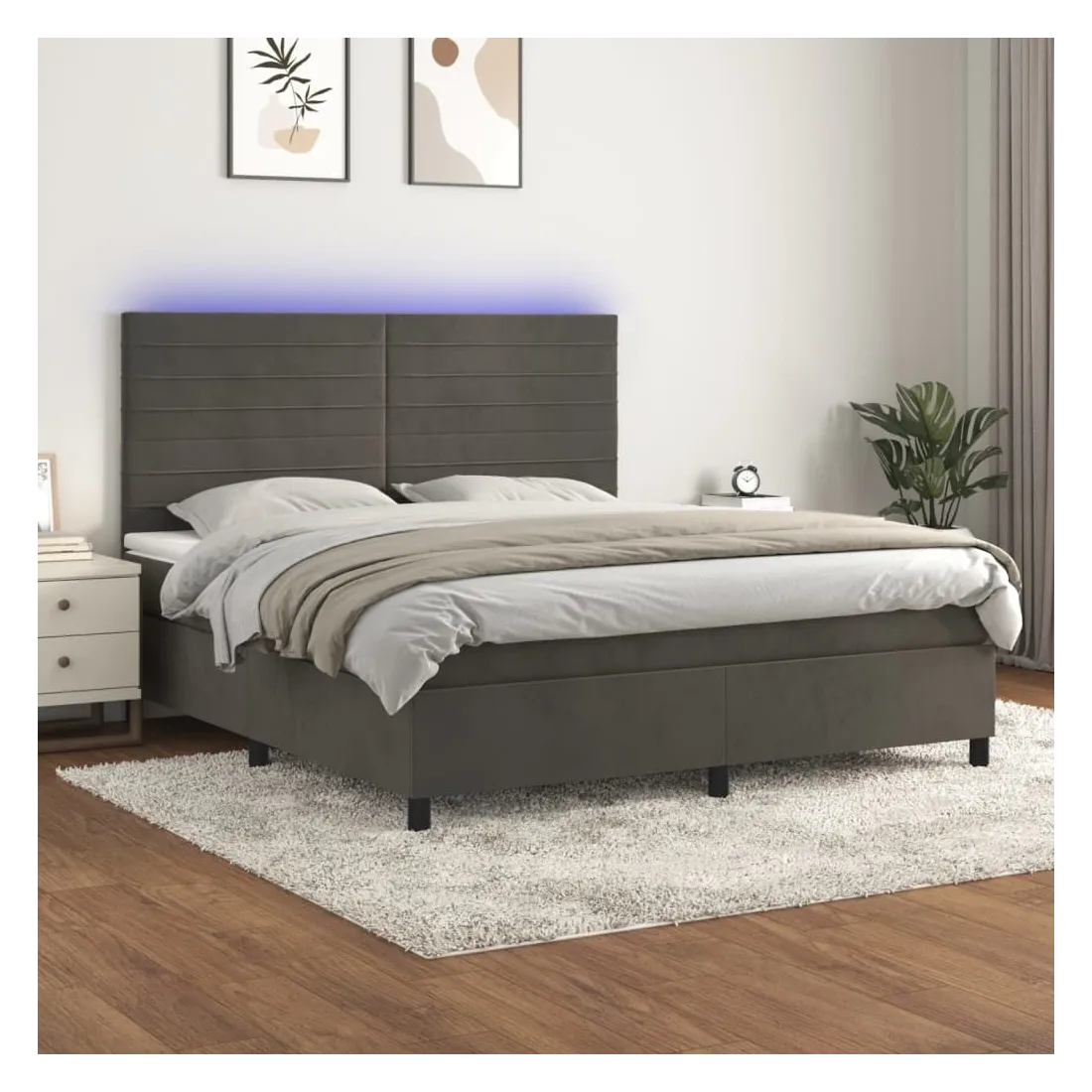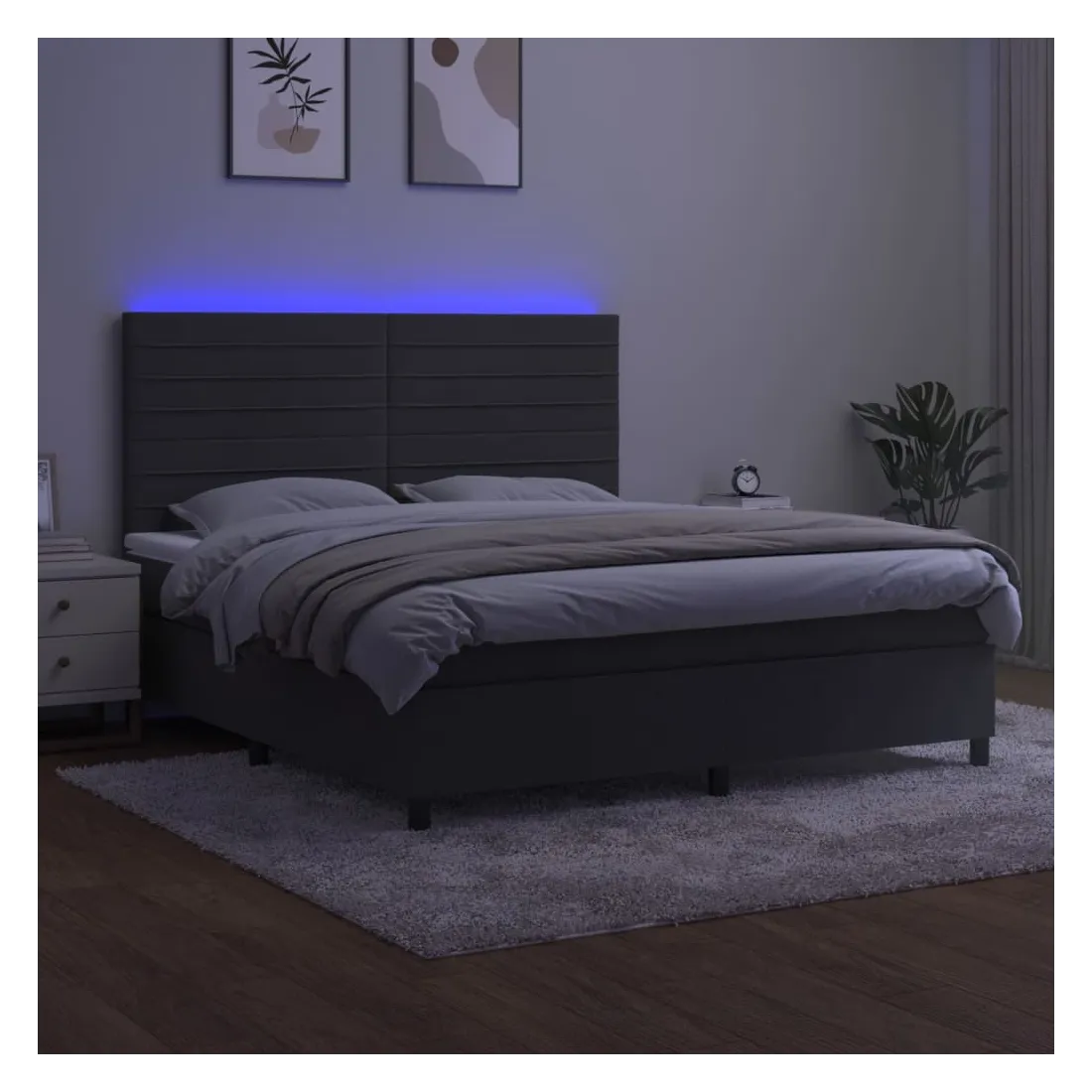 Utilisez ce sommier tapissier avec matelas et LED pour profiter d'un sommeil réparateur ! C'est le point central de votre chambre à coucher. Velours doux : le velours est un tissu doux et luxueux qui se reconnaît à son tas dense de fibres uniformément coupées qui ont une touche lisse. Le tissu en velours présente un toucher doux distinctif, ce qui le rend confortable au toucher.Tête de lit pratique : la tête de lit est réglable en hauteur selon vos préférences. La tête de lit vous offre un excellent soutien du dos lorsque vous êtes assis dans votre lit pour lire ou regarder la télévision.Bande LED colorée : apportez de l'éclairage dans l'obscurité avec des lumières LED colorées !Matelas à ressorts ensachés : le ressort ensaché individuel intégré est connu pour sa très haute qualité tout en assurant un haut niveau de durabilité et d'adaptabilité. Il peut absorber efficacement le bruit et les chocs causés par les sauts et les rotations.Protège-matelas doux pour la peau : le protège-matelas est recouvert d'un tissu résistant et doux pour la peau, ce qui le rend souple et confortable. Remarque :Pour des raisons d'hygiène, le matelas ne peut pas être retourné si l'emballage est retiré ou ouvert.Seule la partie avec un symbole de ciseaux peut être coupée et seule la partie avec l'USB continuera à fonctionner comme avant.Chaque produit est livré avec un manuel de montage dans la boîte pour un montage facile.Ce produit est doté d'un connecteur USB, mais la source d'alimentation certifiée de USB 5V n'est pas incluse.