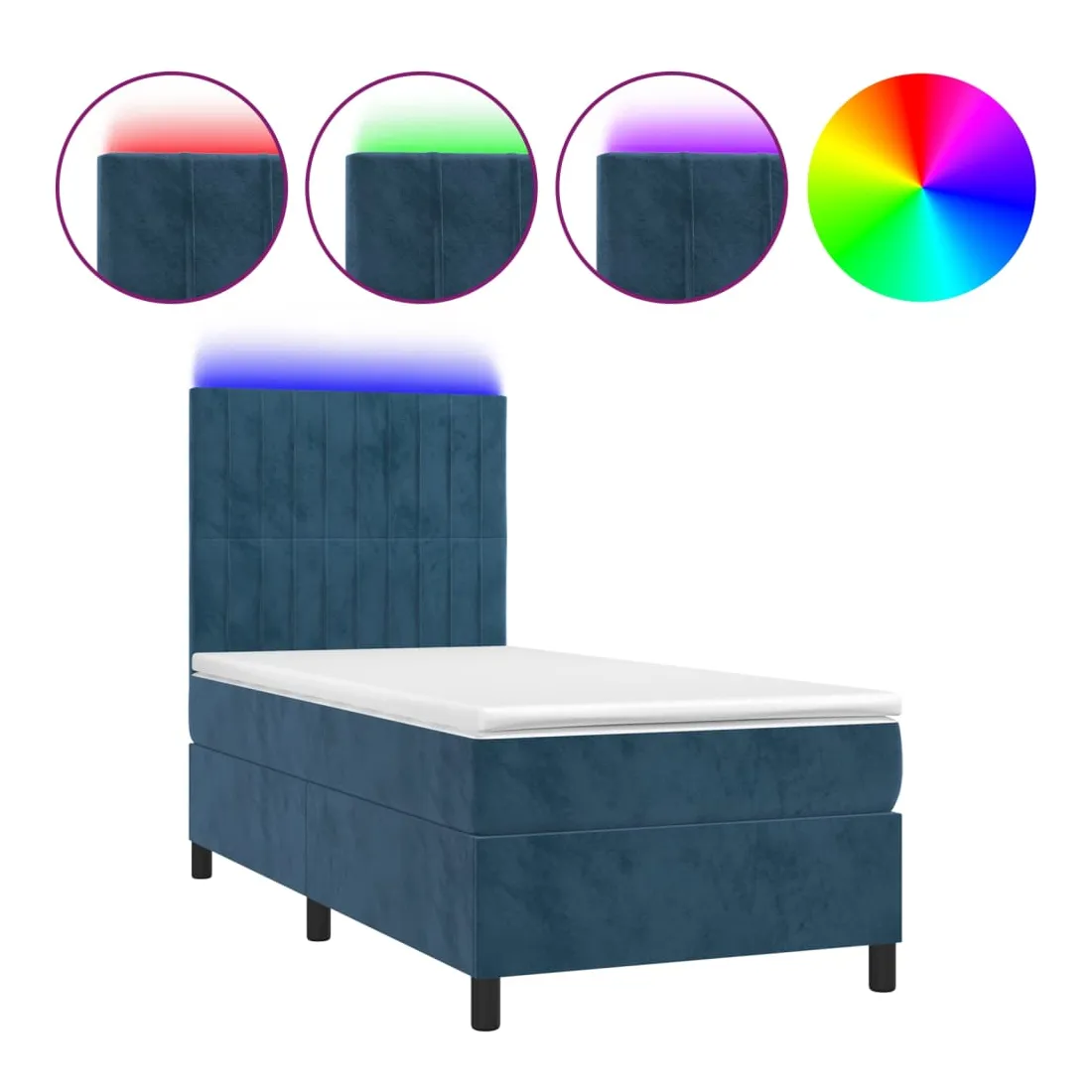 Sommier à lattes de lit avec matelas LED Bleu foncé 100x200 cm