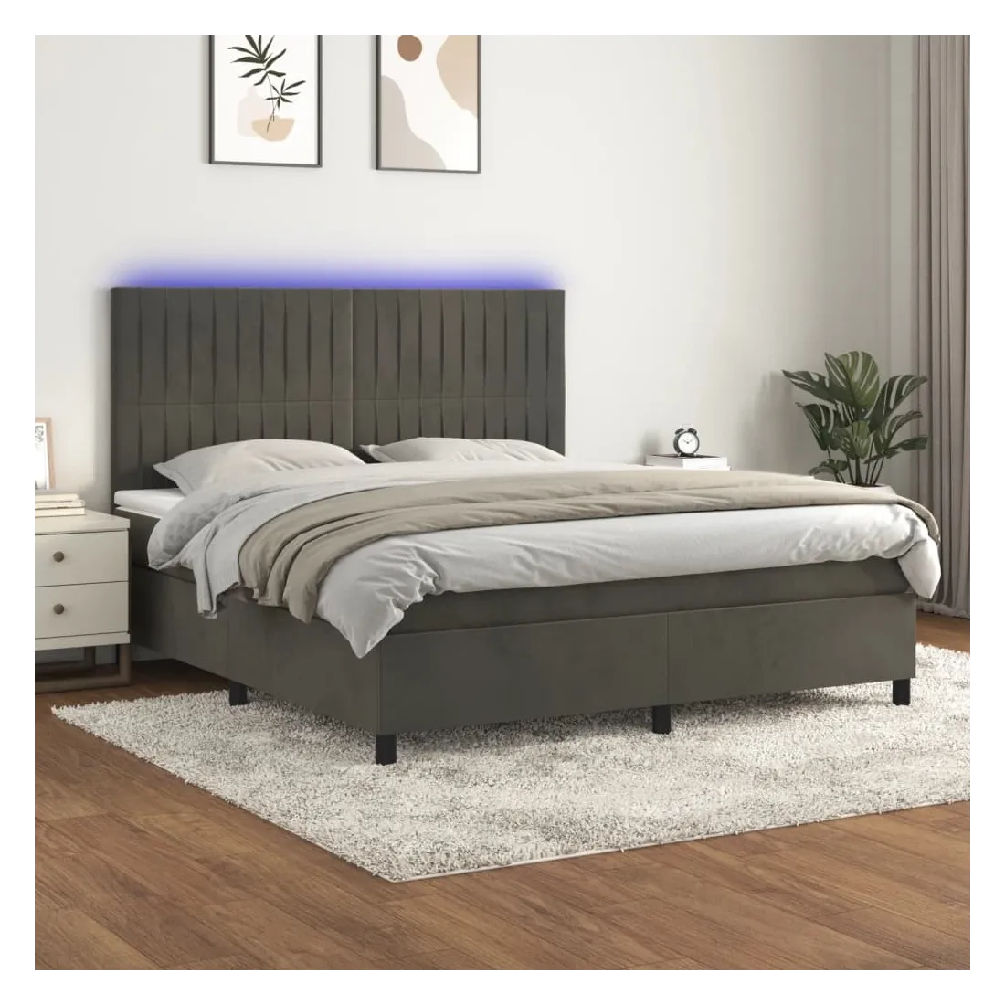 Utilisez ce sommier tapissier avec matelas et LED pour profiter d'un sommeil réparateur ! C'est le point central de votre chambre à coucher. Velours doux : le velours est un tissu doux et luxueux qui se reconnaît à son tas dense de fibres uniformément coupées qui ont une touche lisse. Le tissu en velours présente un toucher doux distinctif, ce qui le rend confortable au toucher.Tête de lit pratique : la tête de lit est réglable en hauteur selon vos préférences. La tête de lit vous offre un excellent soutien du dos lorsque vous êtes assis dans votre lit pour lire ou regarder la télévision.Bande LED colorée : apportez de l'éclairage dans l'obscurité avec des lumières LED colorées !Matelas à ressorts ensachés : le ressort ensaché individuel intégré est connu pour sa très haute qualité tout en assurant un haut niveau de durabilité et d'adaptabilité. Il peut absorber efficacement le bruit et les chocs causés par les sauts et les rotations.Protège-matelas doux pour la peau : le protège-matelas est recouvert d'un tissu résistant et doux pour la peau, ce qui le rend souple et confortable. Remarque :Pour des raisons d'hygiène, le matelas ne peut pas être retourné si l'emballage est retiré ou ouvert.Seule la partie avec un symbole de ciseaux peut être coupée et seule la partie avec l'USB continuera à fonctionner comme avant.Chaque produit est livré avec un manuel de montage dans la boîte pour un montage facile.Ce produit est doté d'un connecteur USB, mais la source d'alimentation certifiée de USB 5V n'est pas incluse.