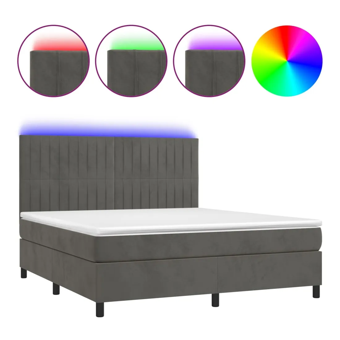 Sommier à lattes de lit matelas et LED Gris foncé 180x200 cm