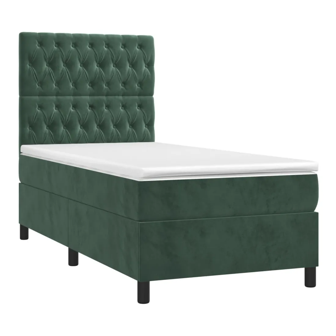 Sommier à lattes de lit et matelas et LED Vert foncé 80x200 cm
