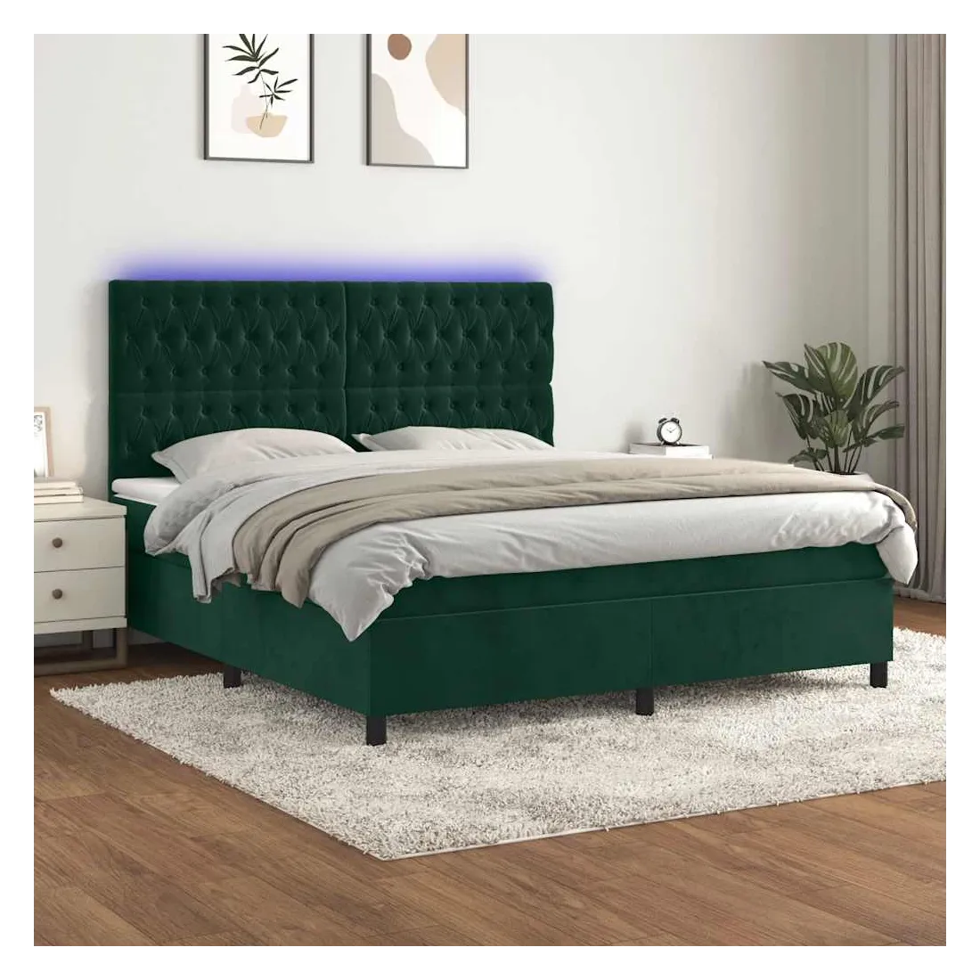 Sommier à lattes de lit matelas et LED Vert foncé 160x200 cm