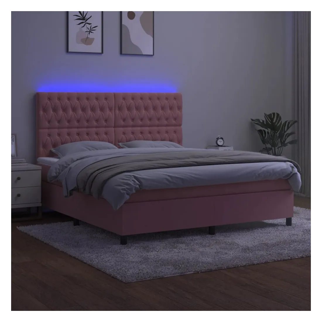 Sommier à lattes de lit matelas et LED Rose 160x200 cm Velours