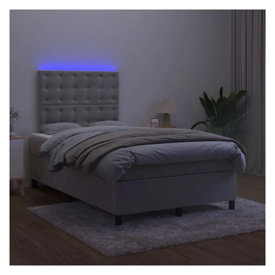 Sommier à lattes de lit matelas et LED Gris clair 120x200 cm