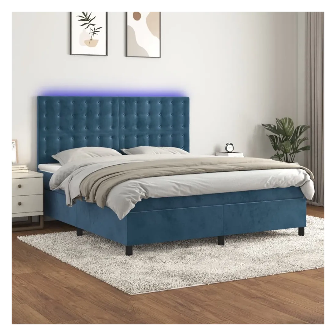 Utilisez ce sommier tapissier avec matelas et LED pour profiter d'un sommeil réparateur ! C'est le point central de votre chambre à coucher. Velours doux : le velours est un tissu doux et luxueux qui se reconnaît à son tas dense de fibres uniformément coupées qui ont une touche lisse. Le tissu en velours présente un toucher doux distinctif, ce qui le rend confortable au toucher.Tête de lit pratique : la tête de lit est réglable en hauteur selon vos préférences. La tête de lit vous offre un excellent soutien du dos lorsque vous êtes assis dans votre lit pour lire ou regarder la télévision.Bande LED colorée : apportez de l'éclairage dans l'obscurité avec des lumières LED colorées !Matelas à ressorts ensachés : le ressort ensaché individuel intégré est connu pour sa très haute qualité tout en assurant un haut niveau de durabilité et d'adaptabilité. Il peut absorber efficacement le bruit et les chocs causés par les sauts et les rotations.Protège-matelas doux pour la peau : le protège-matelas est recouvert d'un tissu résistant et doux pour la peau, ce qui le rend souple et confortable. Remarque :Pour des raisons d'hygiène, le matelas ne peut pas être retourné si l'emballage est retiré ou ouvert.Seule la partie avec un symbole de ciseaux peut être coupée et seule la partie avec l'USB continuera à fonctionner comme avant.Chaque produit est livré avec un manuel de montage dans la boîte pour un montage facile.Ce produit est doté d'un connecteur USB, mais la source d'alimentation certifiée de USB 5V n'est pas incluse.