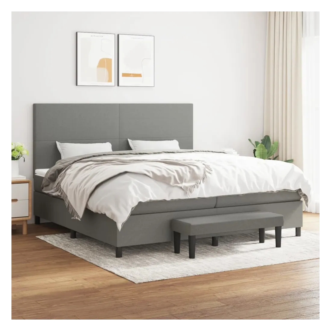 Utilisez ce lit à sommier pour profiter d'une nuit de sommeil réparatrice ! Il vous offre une relaxation maximale et un sommeil agréable. Tissu durable : le tissu présente un aspect simple et épuré, et il est respirant et durable.Tête de lit pratique : la tête de lit est réglable en hauteur selon vos préférences. La tête de lit vous offre un excellent soutien du dos lorsque vous êtes assis dans votre lit pour lire ou regarder la télévision.Matelas à ressorts ensachés : le ressort ensaché individuel intégré est connu pour sa très haute qualité tout en assurant un haut niveau de durabilité et d'adaptabilité. Il peut absorber efficacement le bruit et les chocs causés par les sauts et les rotations.Support moyen-dur : ce matelas de lit offre une stabilité accrue et juste le niveau de fermeté sans sacrifier le confort. Il est donc idéal pour les personnes qui dorment sur le dos ou sur le ventre.Protège-matelas doux pour la peau : le protège-matelas est recouvert d'un tissu résistant et doux pour la peau, ce qui le rend souple et confortable.Banc multifonctionnel : ce banc peut servir de siège supplémentaire dans votre maison. Il peut également être utilisé comme banc de bout de lit. Remarque :Pour des raisons d'hygiène, le matelas ne peut pas être retourné si l'emballage est retiré ou ouvert.Chaque produit est livré avec un manuel de montage dans la boîte pour un montage facile.