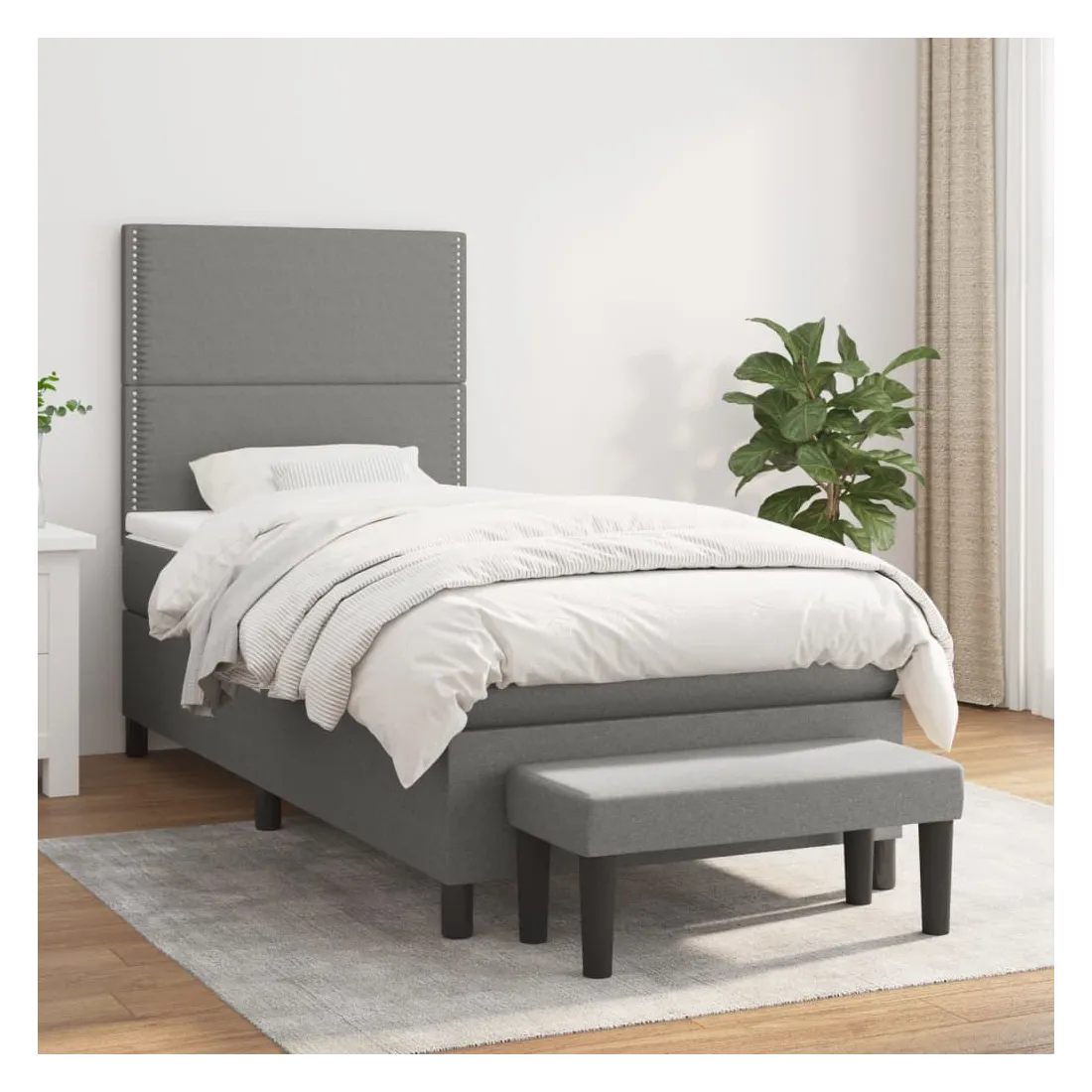 Sommier à lattes de lit avec matelas Gris foncé 100x200cm Tissu