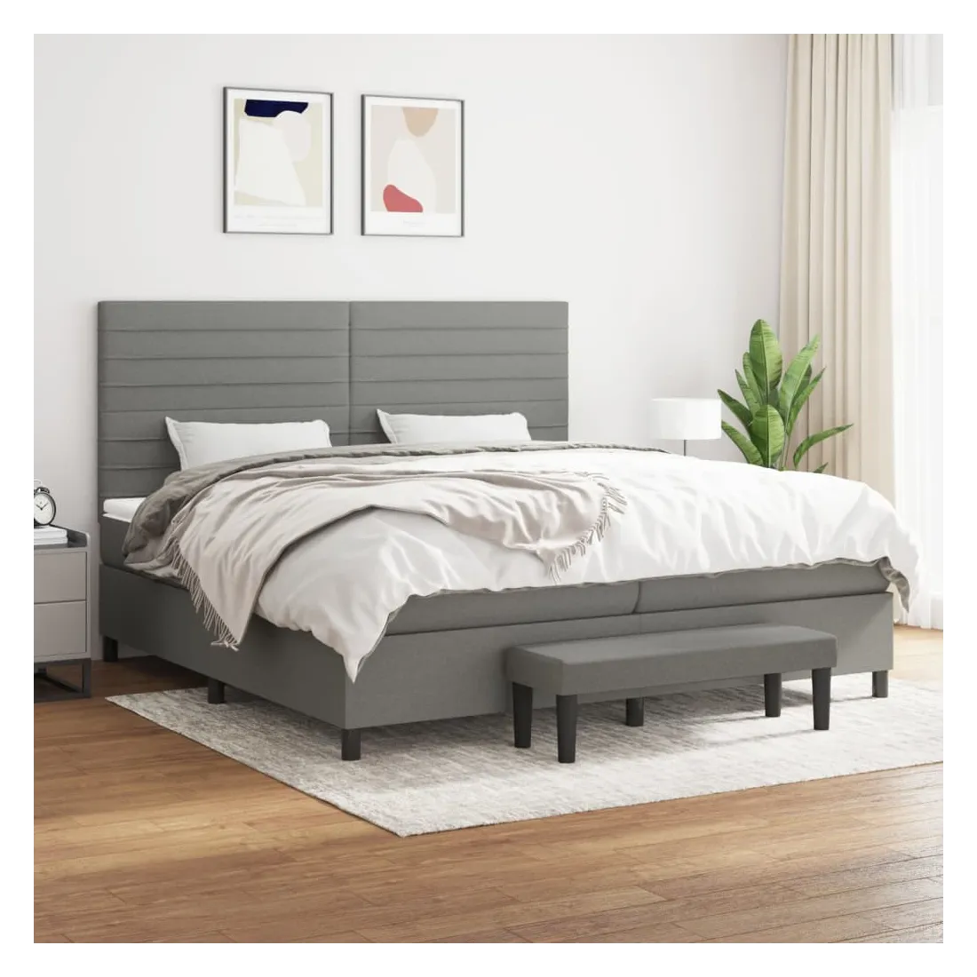 Utilisez ce lit à sommier pour profiter d'une nuit de sommeil réparatrice ! Il vous offre une relaxation maximale et un sommeil agréable. Tissu durable : le tissu présente un aspect simple et épuré, et il est respirant et durable.Tête de lit pratique : la tête de lit est réglable en hauteur selon vos préférences. La tête de lit vous offre un excellent soutien du dos lorsque vous êtes assis dans votre lit pour lire ou regarder la télévision.Matelas à ressorts ensachés : le ressort ensaché individuel intégré est connu pour sa très haute qualité tout en assurant un haut niveau de durabilité et d'adaptabilité. Il peut absorber efficacement le bruit et les chocs causés par les sauts et les rotations.Support moyen-dur : ce matelas de lit offre une stabilité accrue et juste le niveau de fermeté sans sacrifier le confort. Il est donc idéal pour les personnes qui dorment sur le dos ou sur le ventre.Protège-matelas doux pour la peau : le protège-matelas est recouvert d'un tissu résistant et doux pour la peau, ce qui le rend souple et confortable.Banc multifonctionnel : ce banc peut servir de siège supplémentaire dans votre maison. Il peut également être utilisé comme banc de bout de lit. Remarque :Pour des raisons d'hygiène, le matelas ne peut pas être retourné si l'emballage est retiré ou ouvert.Chaque produit est livré avec un manuel de montage dans la boîte pour un montage facile.