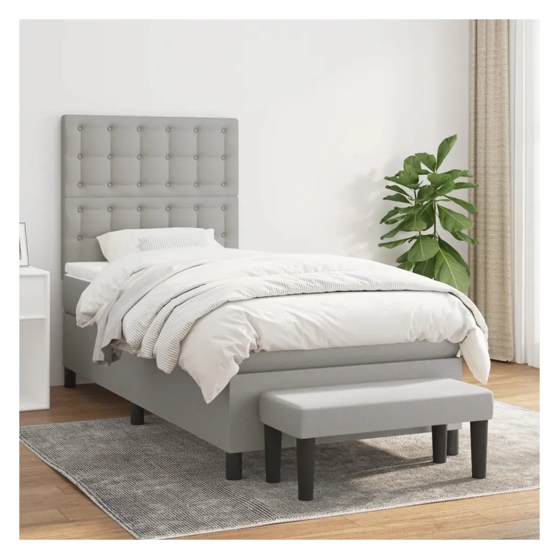 Utilisez ce lit à sommier pour profiter d'une nuit de sommeil réparatrice ! Il vous offre une relaxation maximale et un sommeil agréable. Tissu durable : le tissu présente un aspect simple et épuré, et il est respirant et durable.Tête de lit pratique : la tête de lit est réglable en hauteur selon vos préférences. La tête de lit vous offre un excellent soutien du dos lorsque vous êtes assis dans votre lit pour lire ou regarder la télévision.Matelas à ressorts ensachés : le ressort ensaché individuel intégré est connu pour sa très haute qualité tout en assurant un haut niveau de durabilité et d'adaptabilité. Il peut absorber efficacement le bruit et les chocs causés par les sauts et les rotations.Support moyen-dur : ce matelas de lit offre une stabilité accrue et juste le niveau de fermeté sans sacrifier le confort. Il est donc idéal pour les personnes qui dorment sur le dos ou sur le ventre.Protège-matelas doux pour la peau : le protège-matelas est recouvert d'un tissu résistant et doux pour la peau, ce qui le rend souple et confortable.Banc multifonctionnel : ce banc peut servir de siège supplémentaire dans votre maison. Il peut également être utilisé comme banc de bout de lit. Remarque :Pour des raisons d'hygiène, le matelas ne peut pas être retourné si l'emballage est retiré ou ouvert.Chaque produit est livré avec un manuel de montage dans la boîte pour un montage facile.