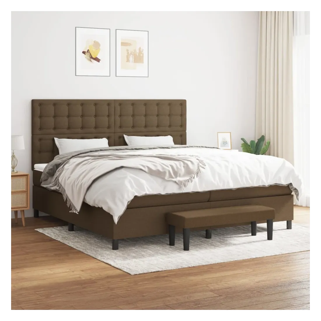 Utilisez ce lit à sommier pour profiter d'une nuit de sommeil réparatrice ! Il vous offre une relaxation maximale et un sommeil agréable. Tissu durable : le tissu présente un aspect simple et épuré, et il est respirant et durable.Tête de lit pratique : la tête de lit est réglable en hauteur selon vos préférences. La tête de lit vous offre un excellent soutien du dos lorsque vous êtes assis dans votre lit pour lire ou regarder la télévision.Matelas à ressorts ensachés : le ressort ensaché individuel intégré est connu pour sa très haute qualité tout en assurant un haut niveau de durabilité et d'adaptabilité. Il peut absorber efficacement le bruit et les chocs causés par les sauts et les rotations.Support moyen-dur : ce matelas de lit offre une stabilité accrue et juste le niveau de fermeté sans sacrifier le confort. Il est donc idéal pour les personnes qui dorment sur le dos ou sur le ventre.Protège-matelas doux pour la peau : le protège-matelas est recouvert d'un tissu résistant et doux pour la peau, ce qui le rend souple et confortable.Banc multifonctionnel : ce banc peut servir de siège supplémentaire dans votre maison. Il peut également être utilisé comme banc de bout de lit. Remarque :Pour des raisons d'hygiène, le matelas ne peut pas être retourné si l'emballage est retiré ou ouvert.Chaque produit est livré avec un manuel de montage dans la boîte pour un montage facile.
