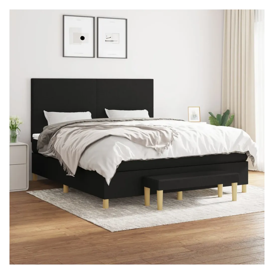 Utilisez ce lit à sommier pour profiter d'une nuit de sommeil réparatrice ! Il vous offre une relaxation maximale et un sommeil agréable. Tissu durable : le tissu présente un aspect simple et épuré, et il est respirant et durable.Tête de lit pratique : la tête de lit est réglable en hauteur selon vos préférences. La tête de lit vous offre un excellent soutien du dos lorsque vous êtes assis dans votre lit pour lire ou regarder la télévision.Matelas à ressorts ensachés : le ressort ensaché individuel intégré est connu pour sa très haute qualité tout en assurant un haut niveau de durabilité et d'adaptabilité. Il peut absorber efficacement le bruit et les chocs causés par les sauts et les rotations.Support moyen-dur : ce matelas de lit offre une stabilité accrue et juste le niveau de fermeté sans sacrifier le confort. Il est donc idéal pour les personnes qui dorment sur le dos ou sur le ventre.Protège-matelas doux pour la peau : le protège-matelas est recouvert d'un tissu résistant et doux pour la peau, ce qui le rend souple et confortable.Banc multifonctionnel : ce banc peut servir de siège supplémentaire dans votre maison. Il peut également être utilisé comme banc de bout de lit. Remarque :Pour des raisons d'hygiène, le matelas ne peut pas être retourné si l'emballage est retiré ou ouvert.Chaque produit est livré avec un manuel de montage dans la boîte pour un montage facile.