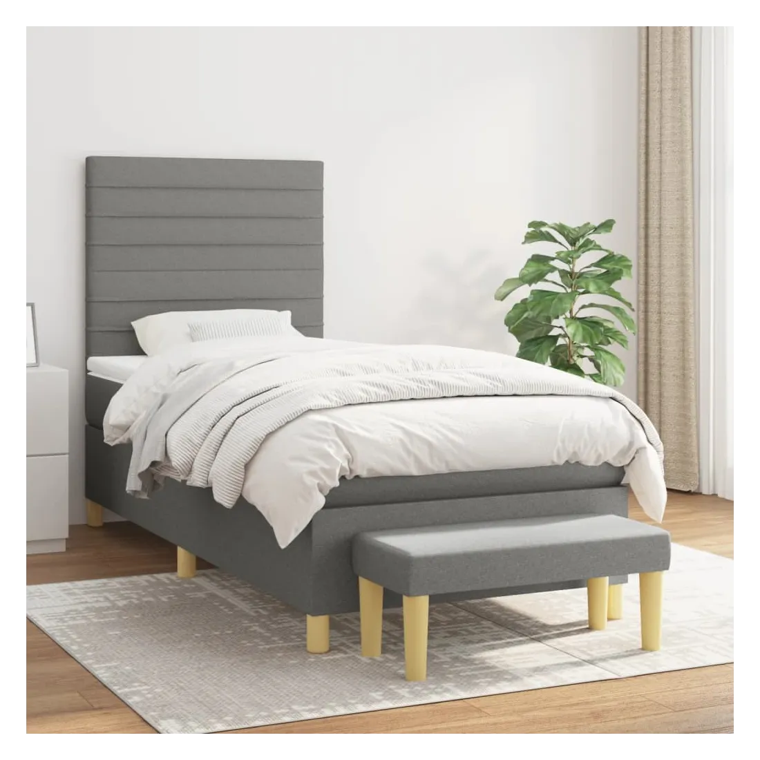 Utilisez ce lit à sommier pour profiter d'une nuit de sommeil réparatrice ! Il vous offre une relaxation maximale et un sommeil agréable. Tissu durable : le tissu présente un aspect simple et épuré, et il est respirant et durable.Tête de lit pratique : la tête de lit est réglable en hauteur selon vos préférences. La tête de lit vous offre un excellent soutien du dos lorsque vous êtes assis dans votre lit pour lire ou regarder la télévision.Matelas à ressorts ensachés : le ressort ensaché individuel intégré est connu pour sa très haute qualité tout en assurant un haut niveau de durabilité et d'adaptabilité. Il peut absorber efficacement le bruit et les chocs causés par les sauts et les rotations.Support moyen-dur : ce matelas de lit offre une stabilité accrue et juste le niveau de fermeté sans sacrifier le confort. Il est donc idéal pour les personnes qui dorment sur le dos ou sur le ventre.Protège-matelas doux pour la peau : le protège-matelas est recouvert d'un tissu résistant et doux pour la peau, ce qui le rend souple et confortable.Banc multifonctionnel : ce banc peut servir de siège supplémentaire dans votre maison. Il peut également être utilisé comme banc de bout de lit. Remarque :Pour des raisons d'hygiène, le matelas ne peut pas être retourné si l'emballage est retiré ou ouvert.Chaque produit est livré avec un manuel de montage dans la boîte pour un montage facile.