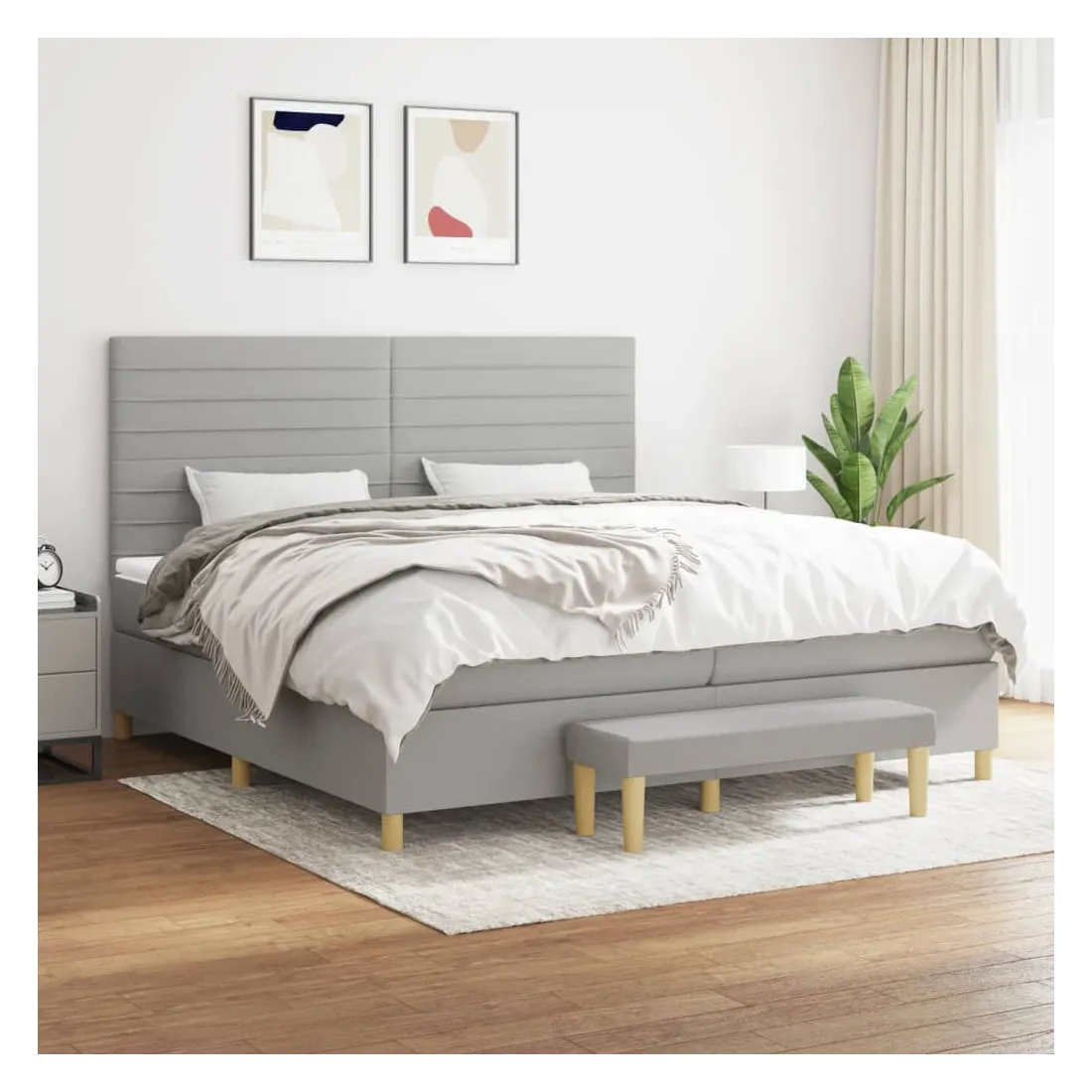 Utilisez ce lit à sommier pour profiter d'une nuit de sommeil réparatrice ! Il vous offre une relaxation maximale et un sommeil agréable. Tissu durable : le tissu présente un aspect simple et épuré, et il est respirant et durable.Tête de lit pratique : la tête de lit est réglable en hauteur selon vos préférences. La tête de lit vous offre un excellent soutien du dos lorsque vous êtes assis dans votre lit pour lire ou regarder la télévision.Matelas à ressorts ensachés : le ressort ensaché individuel intégré est connu pour sa très haute qualité tout en assurant un haut niveau de durabilité et d'adaptabilité. Il peut absorber efficacement le bruit et les chocs causés par les sauts et les rotations.Support moyen-dur : ce matelas de lit offre une stabilité accrue et juste le niveau de fermeté sans sacrifier le confort. Il est donc idéal pour les personnes qui dorment sur le dos ou sur le ventre.Protège-matelas doux pour la peau : le protège-matelas est recouvert d'un tissu résistant et doux pour la peau, ce qui le rend souple et confortable.Banc multifonctionnel : ce banc peut servir de siège supplémentaire dans votre maison. Il peut également être utilisé comme banc de bout de lit. Remarque :Pour des raisons d'hygiène, le matelas ne peut pas être retourné si l'emballage est retiré ou ouvert.Chaque produit est livré avec un manuel de montage dans la boîte pour un montage facile.