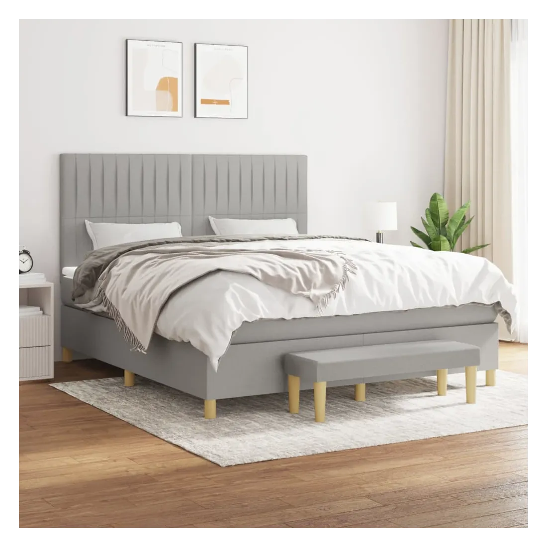 Utilisez ce lit à sommier pour profiter d'une nuit de sommeil réparatrice ! Il vous offre une relaxation maximale et un sommeil agréable. Tissu durable : le tissu présente un aspect simple et épuré, et il est respirant et durable.Tête de lit pratique : la tête de lit est réglable en hauteur selon vos préférences. La tête de lit vous offre un excellent soutien du dos lorsque vous êtes assis dans votre lit pour lire ou regarder la télévision.Matelas à ressorts ensachés : le ressort ensaché individuel intégré est connu pour sa très haute qualité tout en assurant un haut niveau de durabilité et d'adaptabilité. Il peut absorber efficacement le bruit et les chocs causés par les sauts et les rotations.Support moyen-dur : ce matelas de lit offre une stabilité accrue et juste le niveau de fermeté sans sacrifier le confort. Il est donc idéal pour les personnes qui dorment sur le dos ou sur le ventre.Protège-matelas doux pour la peau : le protège-matelas est recouvert d'un tissu résistant et doux pour la peau, ce qui le rend souple et confortable.Banc multifonctionnel : ce banc peut servir de siège supplémentaire dans votre maison. Il peut également être utilisé comme banc de bout de lit. Remarque :Pour des raisons d'hygiène, le matelas ne peut pas être retourné si l'emballage est retiré ou ouvert.Chaque produit est livré avec un manuel de montage dans la boîte pour un montage facile.