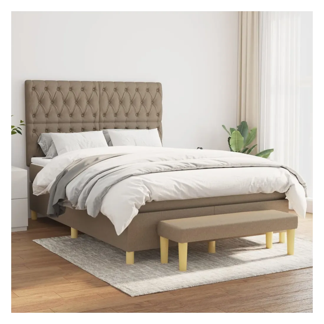 Sommier à lattes de lit avec matelas Taupe 140x190 cm Tissu