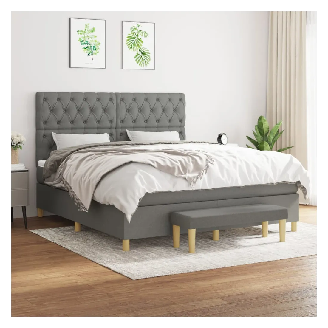 Utilisez ce lit à sommier pour profiter d'une nuit de sommeil réparatrice ! Il vous offre une relaxation maximale et un sommeil agréable. Tissu durable : le tissu présente un aspect simple et épuré, et il est respirant et durable.Tête de lit pratique : la tête de lit est réglable en hauteur selon vos préférences. La tête de lit vous offre un excellent soutien du dos lorsque vous êtes assis dans votre lit pour lire ou regarder la télévision.Matelas à ressorts ensachés : le ressort ensaché individuel intégré est connu pour sa très haute qualité tout en assurant un haut niveau de durabilité et d'adaptabilité. Il peut absorber efficacement le bruit et les chocs causés par les sauts et les rotations.Support moyen-dur : ce matelas de lit offre une stabilité accrue et juste le niveau de fermeté sans sacrifier le confort. Il est donc idéal pour les personnes qui dorment sur le dos ou sur le ventre.Protège-matelas doux pour la peau : le protège-matelas est recouvert d'un tissu résistant et doux pour la peau, ce qui le rend souple et confortable.Banc multifonctionnel : ce banc peut servir de siège supplémentaire dans votre maison. Il peut également être utilisé comme banc de bout de lit. Remarque :Pour des raisons d'hygiène, le matelas ne peut pas être retourné si l'emballage est retiré ou ouvert.Chaque produit est livré avec un manuel de montage dans la boîte pour un montage facile.