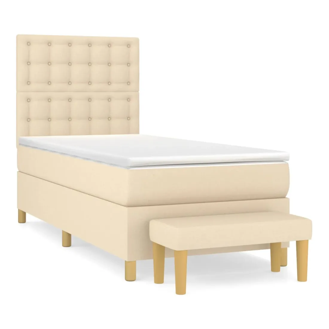 Sommier à lattes de lit et matelas Crème 90x190 cm Tissu