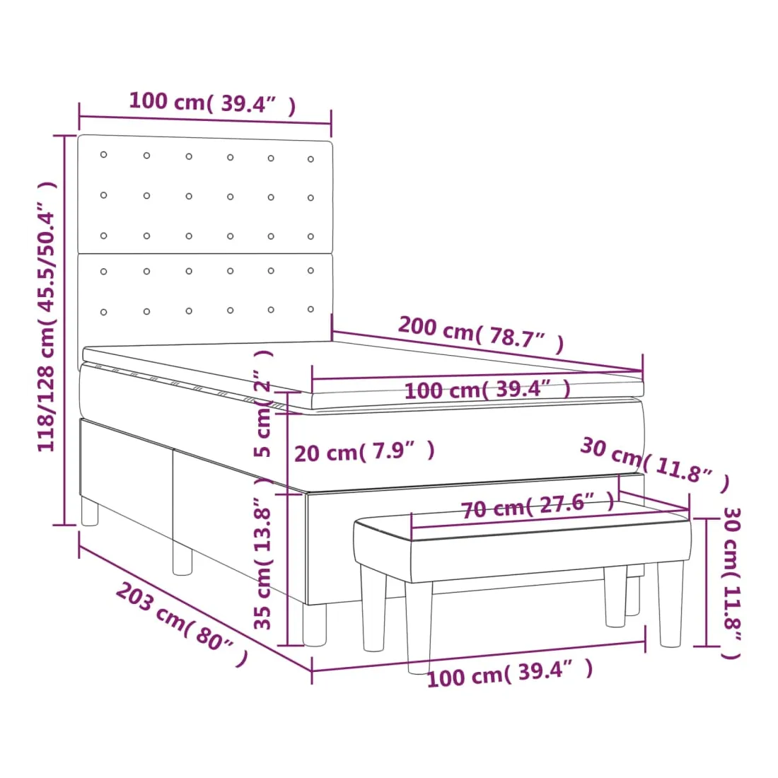 • Dimensions: 203 x 100 x 118/128 cm (L x l x H)