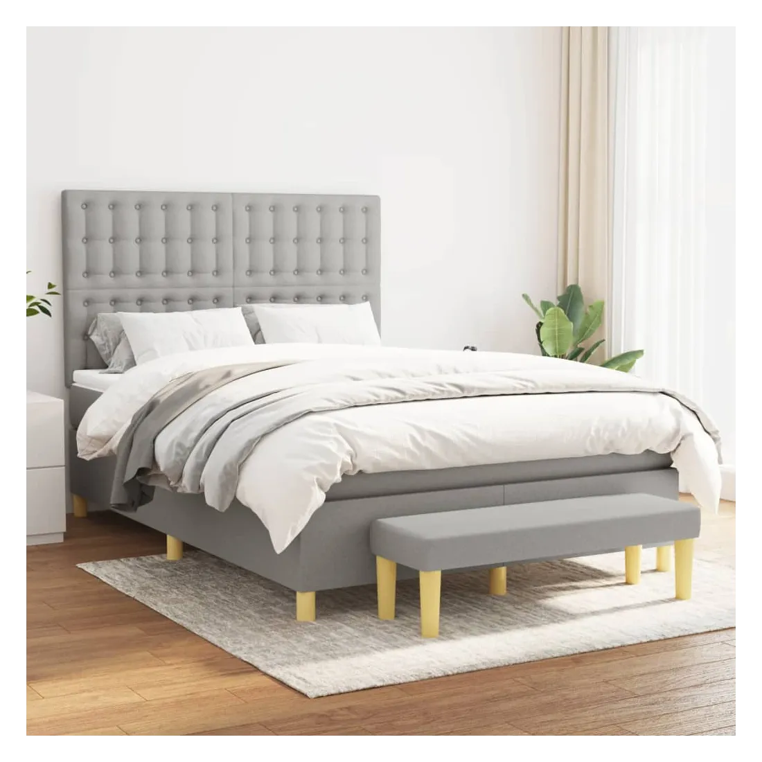 Sommier à lattes de lit avec matelas Gris clair 140x190cm Tissu