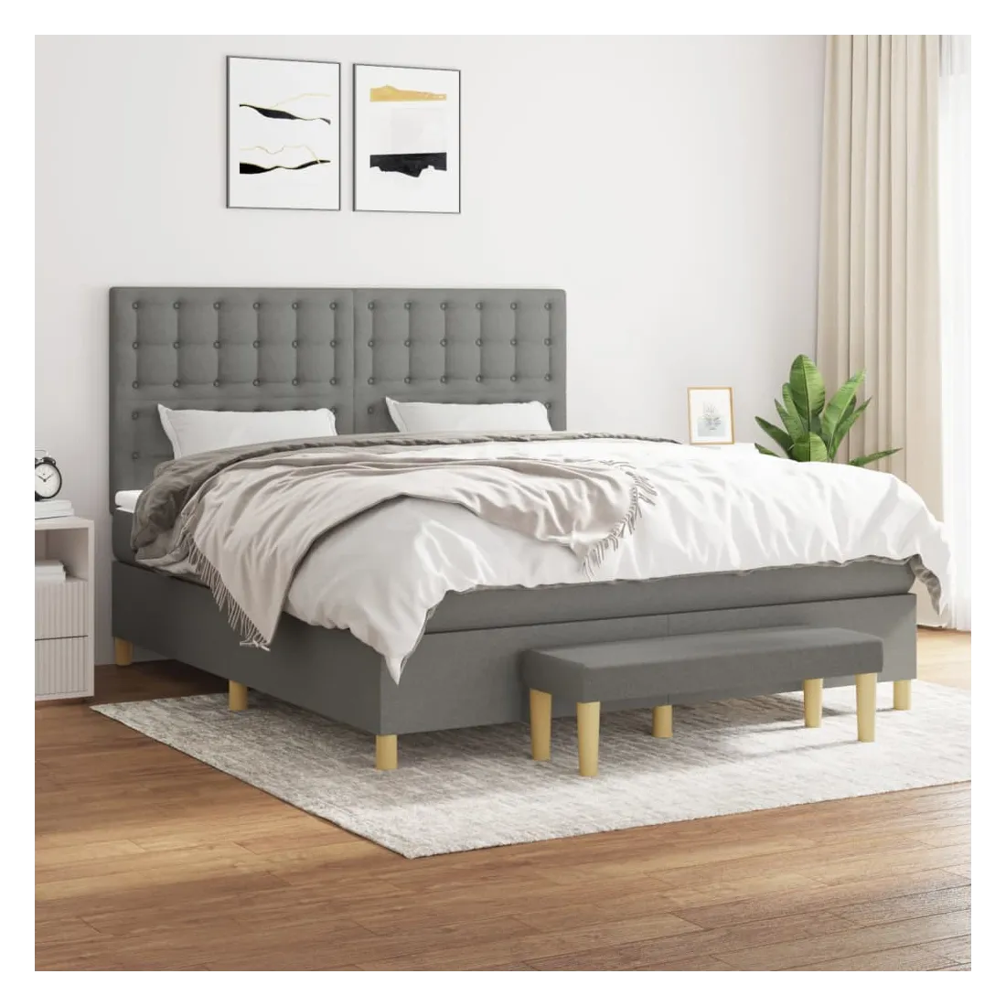 Utilisez ce lit à sommier pour profiter d'une nuit de sommeil réparatrice ! Il vous offre une relaxation maximale et un sommeil agréable. Tissu durable : le tissu présente un aspect simple et épuré, et il est respirant et durable.Tête de lit pratique : la tête de lit est réglable en hauteur selon vos préférences. La tête de lit vous offre un excellent soutien du dos lorsque vous êtes assis dans votre lit pour lire ou regarder la télévision.Matelas à ressorts ensachés : le ressort ensaché individuel intégré est connu pour sa très haute qualité tout en assurant un haut niveau de durabilité et d'adaptabilité. Il peut absorber efficacement le bruit et les chocs causés par les sauts et les rotations.Support moyen-dur : ce matelas de lit offre une stabilité accrue et juste le niveau de fermeté sans sacrifier le confort. Il est donc idéal pour les personnes qui dorment sur le dos ou sur le ventre.Protège-matelas doux pour la peau : le protège-matelas est recouvert d'un tissu résistant et doux pour la peau, ce qui le rend souple et confortable.Banc multifonctionnel : ce banc peut servir de siège supplémentaire dans votre maison. Il peut également être utilisé comme banc de bout de lit. Remarque :Pour des raisons d'hygiène, le matelas ne peut pas être retourné si l'emballage est retiré ou ouvert.Chaque produit est livré avec un manuel de montage dans la boîte pour un montage facile.