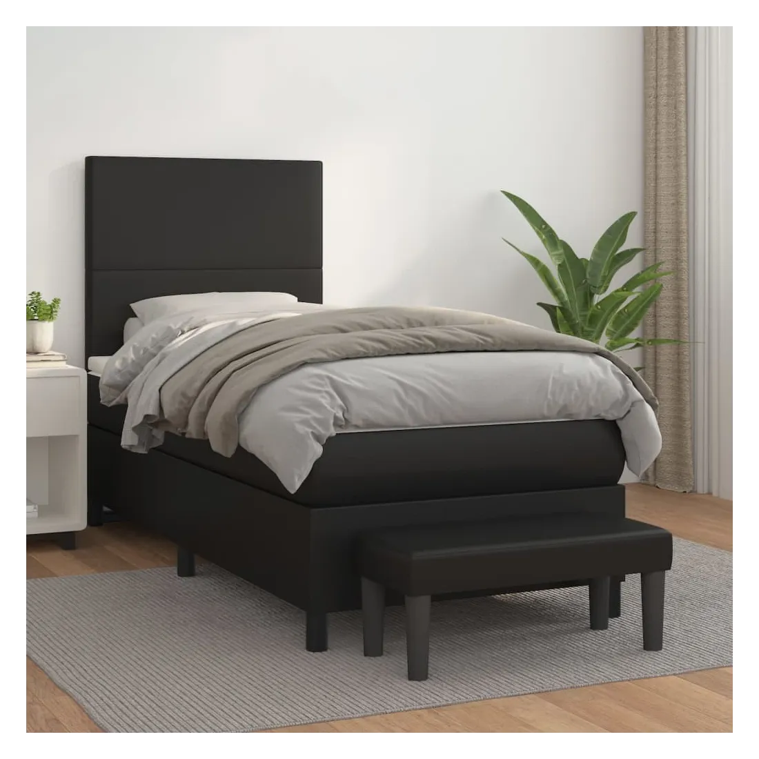 Utilisez ce lit à sommier pour profiter d'une nuit de sommeil réparatrice ! Il vous offre une relaxation maximale et un sommeil agréable. Similicuir durable : le similicuir de qualité supérieure est un matériau très durable. Il est résistant aux taches, ce qui le rend facile à nettoyer avec un chiffon humide. La surface lisse donne également un aspect luxueux et la beauté du cuir véritable.Tête de lit pratique : la tête de lit est réglable en hauteur selon vos préférences. La tête de lit vous offre un excellent soutien du dos lorsque vous êtes assis dans votre lit pour lire ou regarder la télévision.Matelas à ressorts ensachés : le ressort ensaché individuel intégré est connu pour sa très haute qualité tout en assurant un haut niveau de durabilité et d'adaptabilité. Il peut absorber efficacement le bruit et les chocs causés par les sauts et les rotations.Support moyen-dur : ce matelas de lit offre une stabilité accrue et juste le niveau de fermeté sans sacrifier le confort. Il est donc idéal pour les personnes qui dorment sur le dos ou sur le ventre.Protège-matelas doux pour la peau : le protège-matelas est recouvert d'un tissu résistant et doux pour la peau, ce qui le rend souple et confortable.Banc multifonctionnel : ce banc peut servir de siège supplémentaire dans votre maison. Il peut également être utilisé comme banc de bout de lit. Remarque :Pour des raisons d'hygiène, le matelas ne peut pas être retourné si l'emballage est retiré ou ouvert.Chaque produit est livré avec un manuel de montage dans la boîte pour un montage facile.