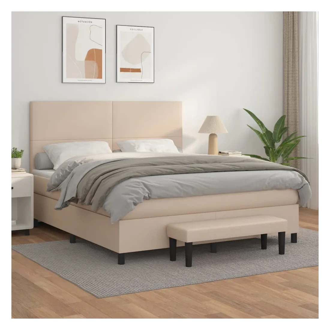 Utilisez ce lit à sommier pour profiter d'une nuit de sommeil réparatrice ! Il vous offre une relaxation maximale et un sommeil agréable. Similicuir durable : le similicuir de qualité supérieure est un matériau très durable. Il est résistant aux taches, ce qui le rend facile à nettoyer avec un chiffon humide. La surface lisse donne également un aspect luxueux et la beauté du cuir véritable.Tête de lit pratique : la tête de lit est réglable en hauteur selon vos préférences. La tête de lit vous offre un excellent soutien du dos lorsque vous êtes assis dans votre lit pour lire ou regarder la télévision.Matelas à ressorts ensachés : le ressort ensaché individuel intégré est connu pour sa très haute qualité tout en assurant un haut niveau de durabilité et d'adaptabilité. Il peut absorber efficacement le bruit et les chocs causés par les sauts et les rotations.Support moyen-dur : ce matelas de lit offre une stabilité accrue et juste le niveau de fermeté sans sacrifier le confort. Il est donc idéal pour les personnes qui dorment sur le dos ou sur le ventre.Protège-matelas doux pour la peau : le protège-matelas est recouvert d'un tissu résistant et doux pour la peau, ce qui le rend souple et confortable.Banc multifonctionnel : ce banc peut servir de siège supplémentaire dans votre maison. Il peut également être utilisé comme banc de bout de lit. Remarque :Pour des raisons d'hygiène, le matelas ne peut pas être retourné si l'emballage est retiré ou ouvert.Chaque produit est livré avec un manuel de montage dans la boîte pour un montage facile.