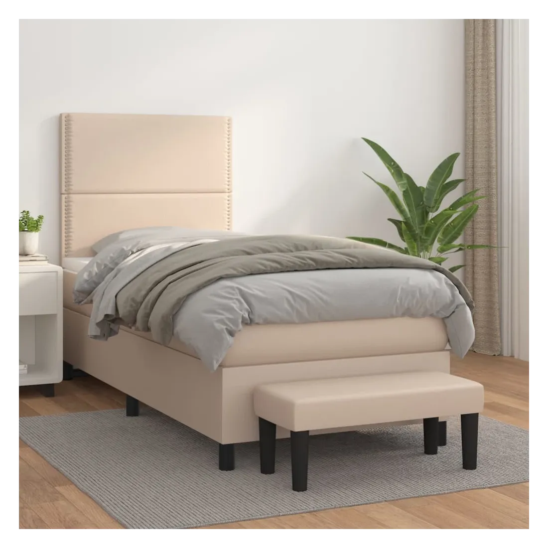 Utilisez ce lit à sommier pour profiter d'une nuit de sommeil réparatrice ! Il vous offre une relaxation maximale et un sommeil agréable. Similicuir durable : le similicuir de qualité supérieure est un matériau très durable. Il est résistant aux taches, ce qui le rend facile à nettoyer avec un chiffon humide. La surface lisse donne également un aspect luxueux et la beauté du cuir véritable.Tête de lit pratique : la tête de lit est réglable en hauteur selon vos préférences. La tête de lit vous offre un excellent soutien du dos lorsque vous êtes assis dans votre lit pour lire ou regarder la télévision.Matelas à ressorts ensachés : le ressort ensaché individuel intégré est connu pour sa très haute qualité tout en assurant un haut niveau de durabilité et d'adaptabilité. Il peut absorber efficacement le bruit et les chocs causés par les sauts et les rotations.Support moyen-dur : ce matelas de lit offre une stabilité accrue et juste le niveau de fermeté sans sacrifier le confort. Il est donc idéal pour les personnes qui dorment sur le dos ou sur le ventre.Protège-matelas doux pour la peau : le protège-matelas est recouvert d'un tissu résistant et doux pour la peau, ce qui le rend souple et confortable.Banc multifonctionnel : ce banc peut servir de siège supplémentaire dans votre maison. Il peut également être utilisé comme banc de bout de lit. Remarque :Pour des raisons d'hygiène, le matelas ne peut pas être retourné si l'emballage est retiré ou ouvert.Chaque produit est livré avec un manuel de montage dans la boîte pour un montage facile.
