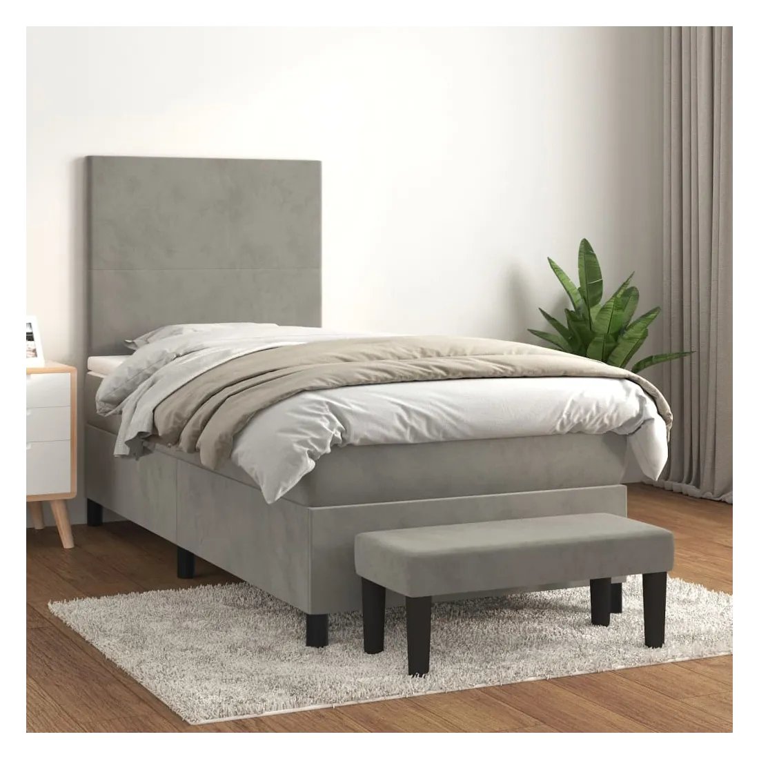 Sommier à lattes de lit et matelas Gris clair 100x200cm Velours