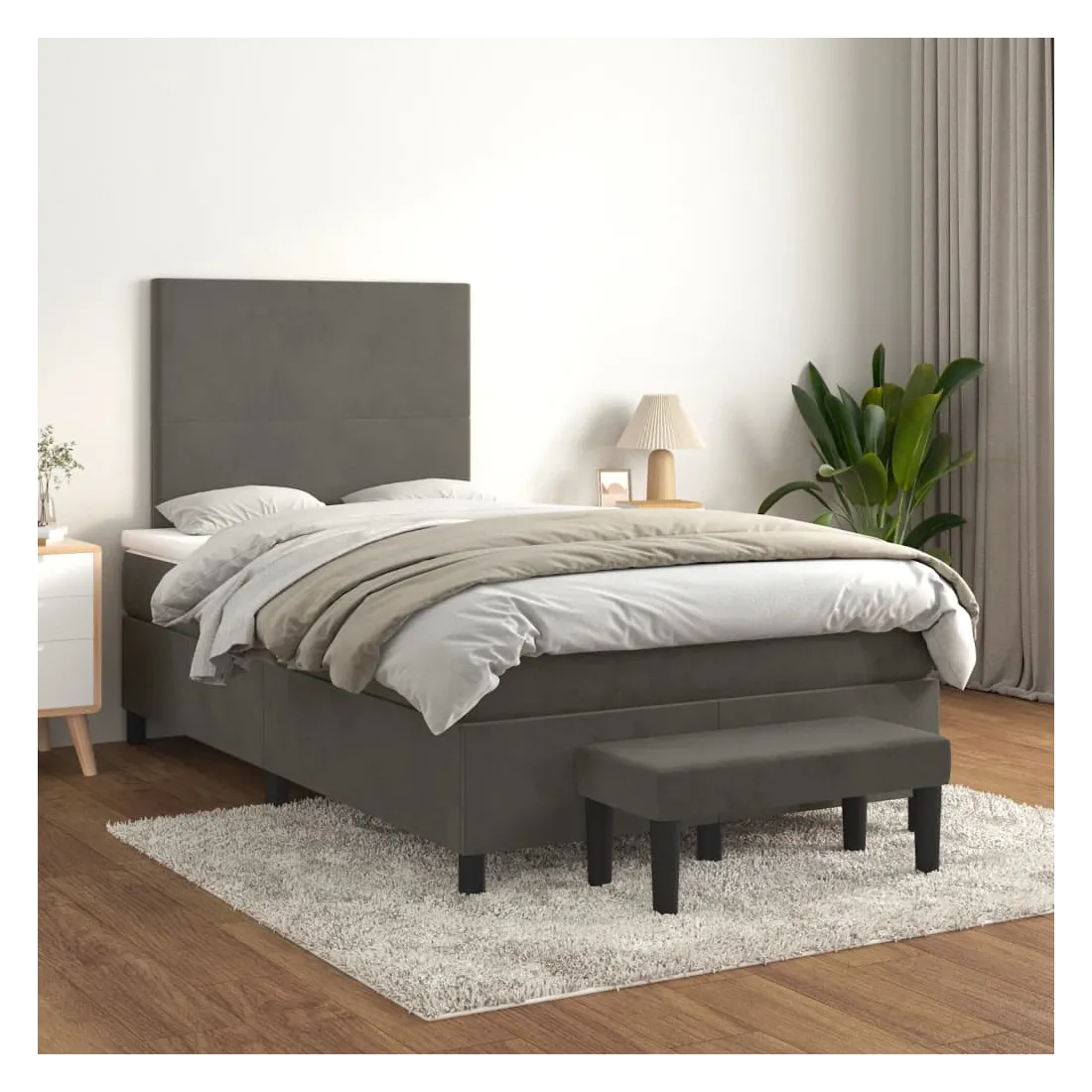 Utilisez ce lit à sommier pour profiter d'une nuit de sommeil réparatrice ! Il vous offre une relaxation maximale et un sommeil agréable. Velours doux : le velours est un tissu doux et luxueux qui se reconnaît à son tas dense de fibres uniformément coupées qui ont une touche lisse. Le tissu en velours présente un toucher doux distinctif, ce qui le rend confortable au toucher.Tête de lit pratique : la tête de lit est réglable en hauteur selon vos préférences. La tête de lit vous offre un excellent soutien du dos lorsque vous êtes assis dans votre lit pour lire ou regarder la télévision.Matelas à ressorts ensachés : le ressort ensaché individuel intégré est connu pour sa très haute qualité tout en assurant un haut niveau de durabilité et d'adaptabilité. Il peut absorber efficacement le bruit et les chocs causés par les sauts et les rotations.Support moyen-dur : ce matelas de lit offre une stabilité accrue et juste le niveau de fermeté sans sacrifier le confort. Il est donc idéal pour les personnes qui dorment sur le dos ou sur le ventre.Protège-matelas doux pour la peau : le protège-matelas est recouvert d'un tissu résistant et doux pour la peau, ce qui le rend souple et confortable.Banc multifonctionnel : ce banc peut servir de siège supplémentaire dans votre maison. Il peut également être utilisé comme banc de bout de lit. Remarque :Pour des raisons d'hygiène, le matelas ne peut pas être retourné si l'emballage est retiré ou ouvert.Chaque produit est livré avec un manuel de montage dans la boîte pour un montage facile.